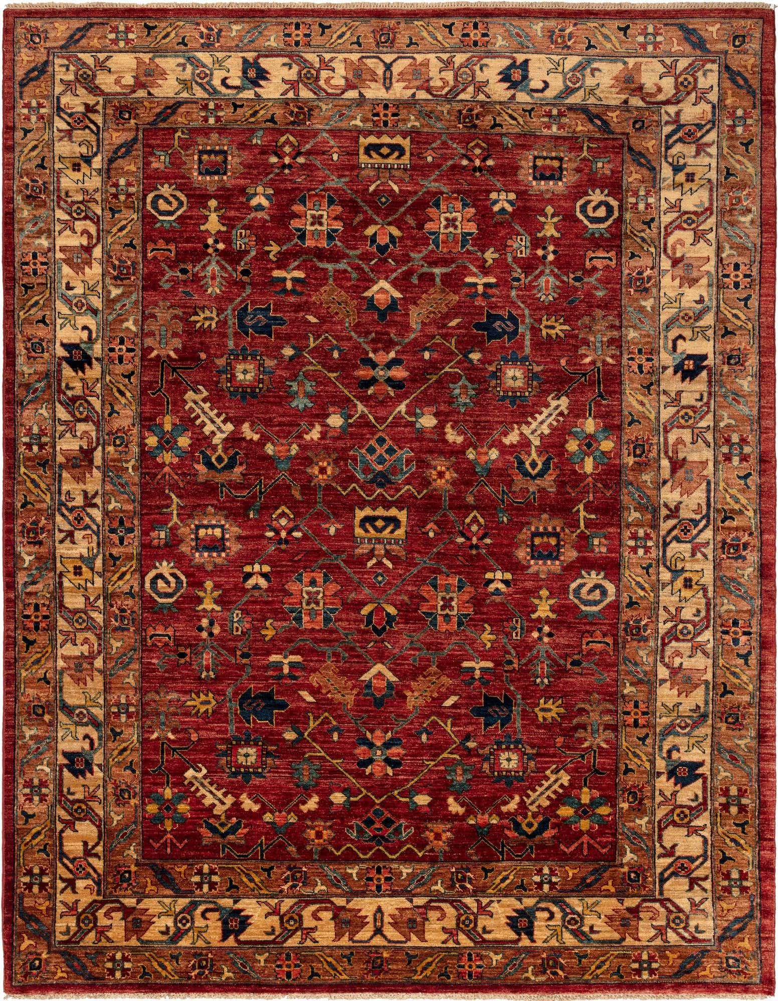 Primary color is Red. Colors in this rug include: Red, Brown.