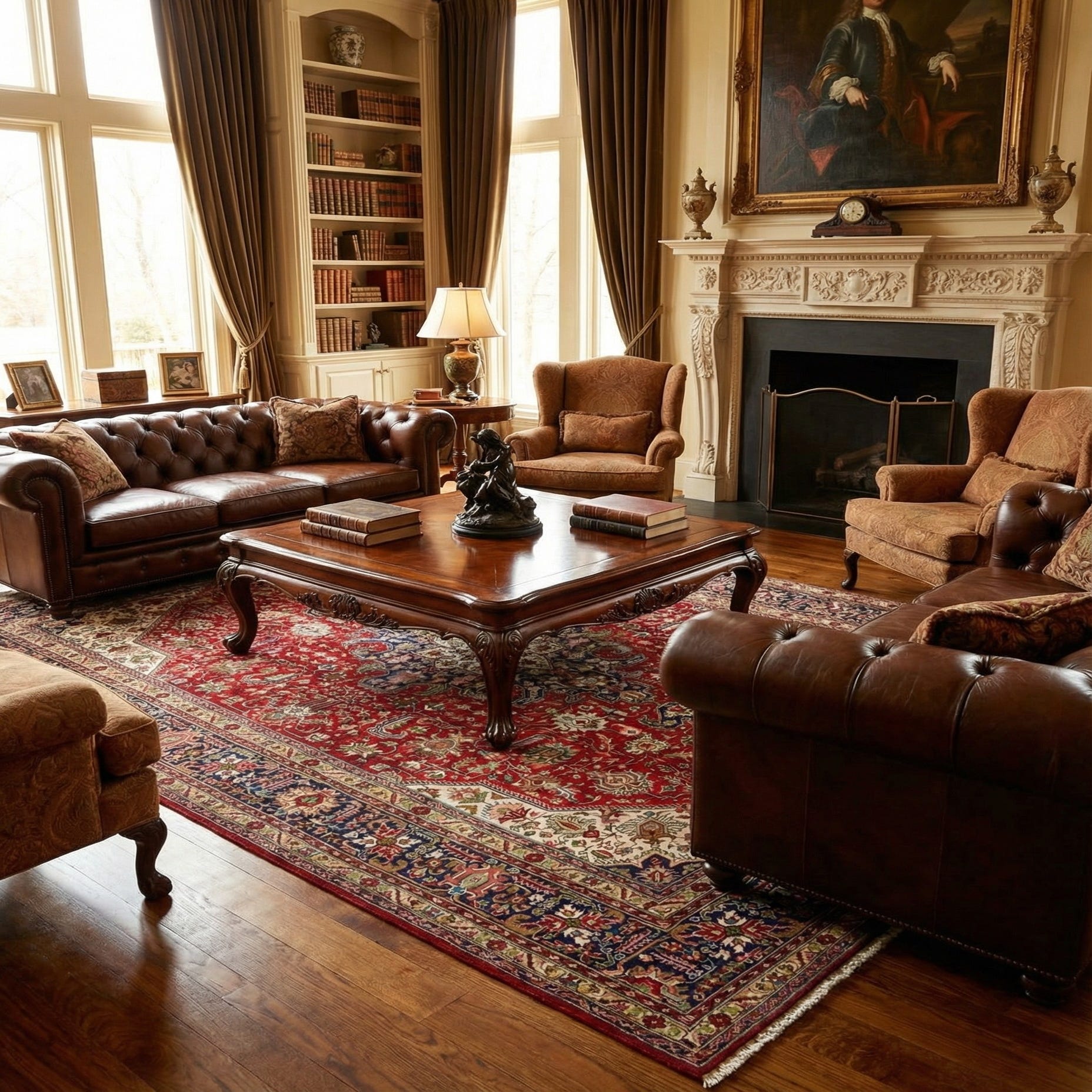 With an elaborate central medallion and floral motifs, the pattern demonstrates timeless elegance, akin to classic Persian styling. The detailed borders frame the piece with precision, adding depth and structure to the overall design. The color palette makes it versatile for pairing with both rich, traditional decors as well as more contemporary spaces seeking a touch of warmth and historic charm.