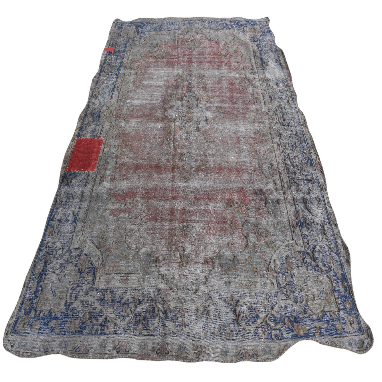 This Persian Ultra Vintage rug is an antique Persian Rug that has been washed, over-dyed, and then shaved down to a low pile. Look at the detail pictures to fully appreciate the uniqueness of this piece.