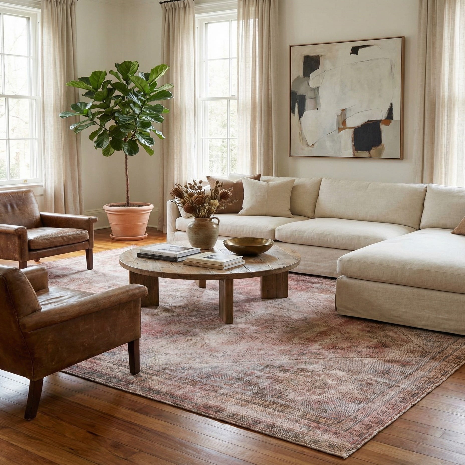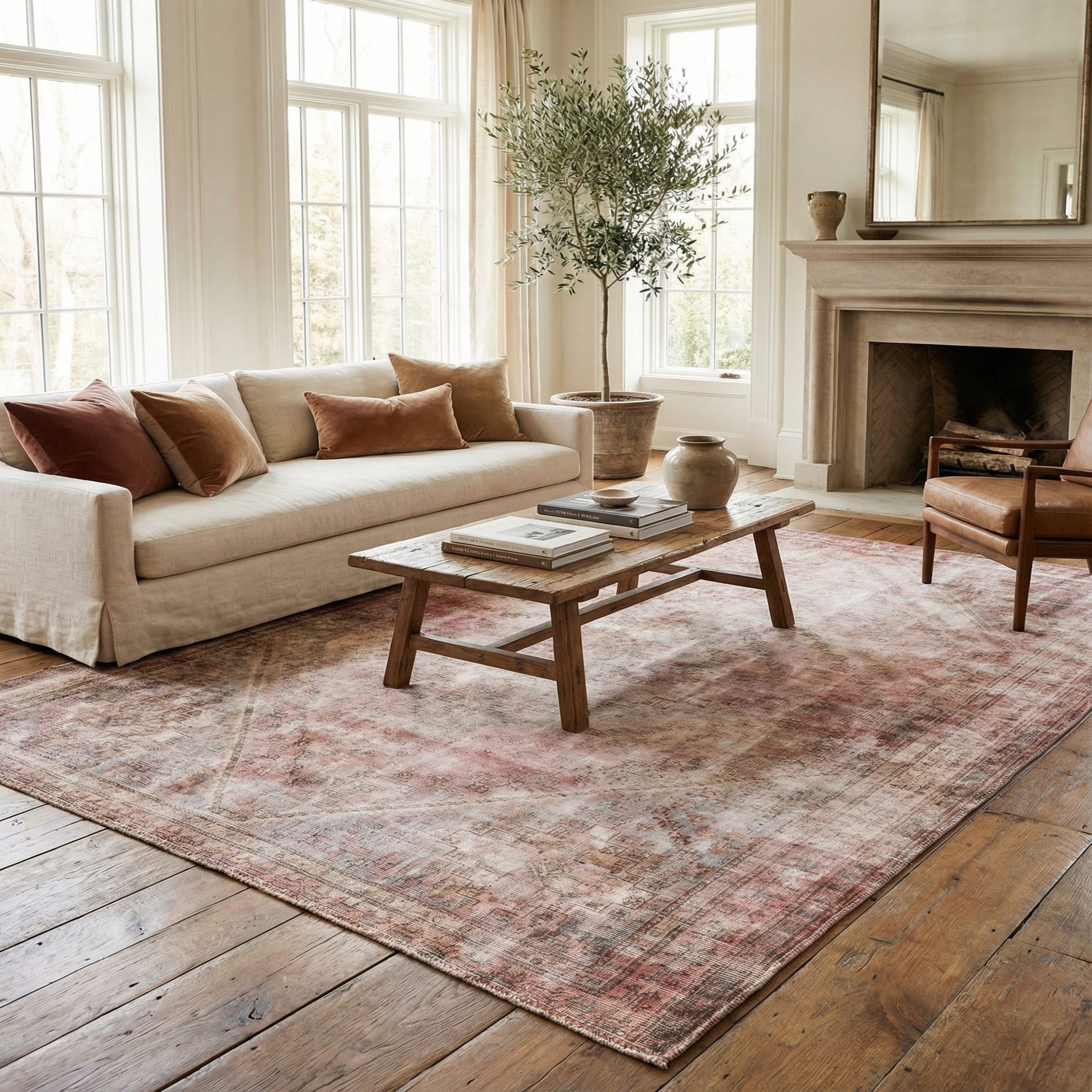 Thanks to its versatile hues and timeless pattern, this rug integrates smoothly into a variety of decor scenarios, from a stately study adorned with dark wood and leather furniture to an eclectic living space where it might act as an anchor amidst a mix of modern and antique pieces. It could also provide a warm and inviting focal point in a minimalist setting where its ornate detailing adds depth and interest. This rug's elegant aging and color scheme allow it to harmonize with both light and dark flooring, making it a flexible addition to any interior design plan.