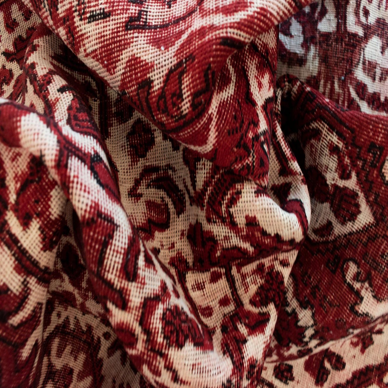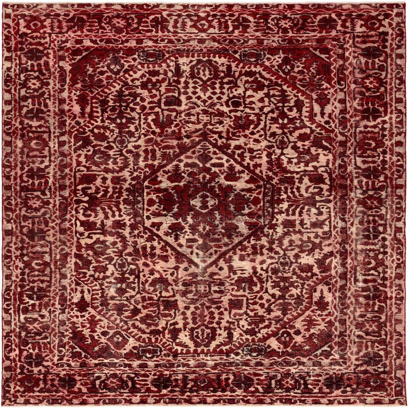 A 6x9 rectangular Vintage Royal Persian rug in rich reds with an intricate, faded traditional pattern, suitable for a living room.