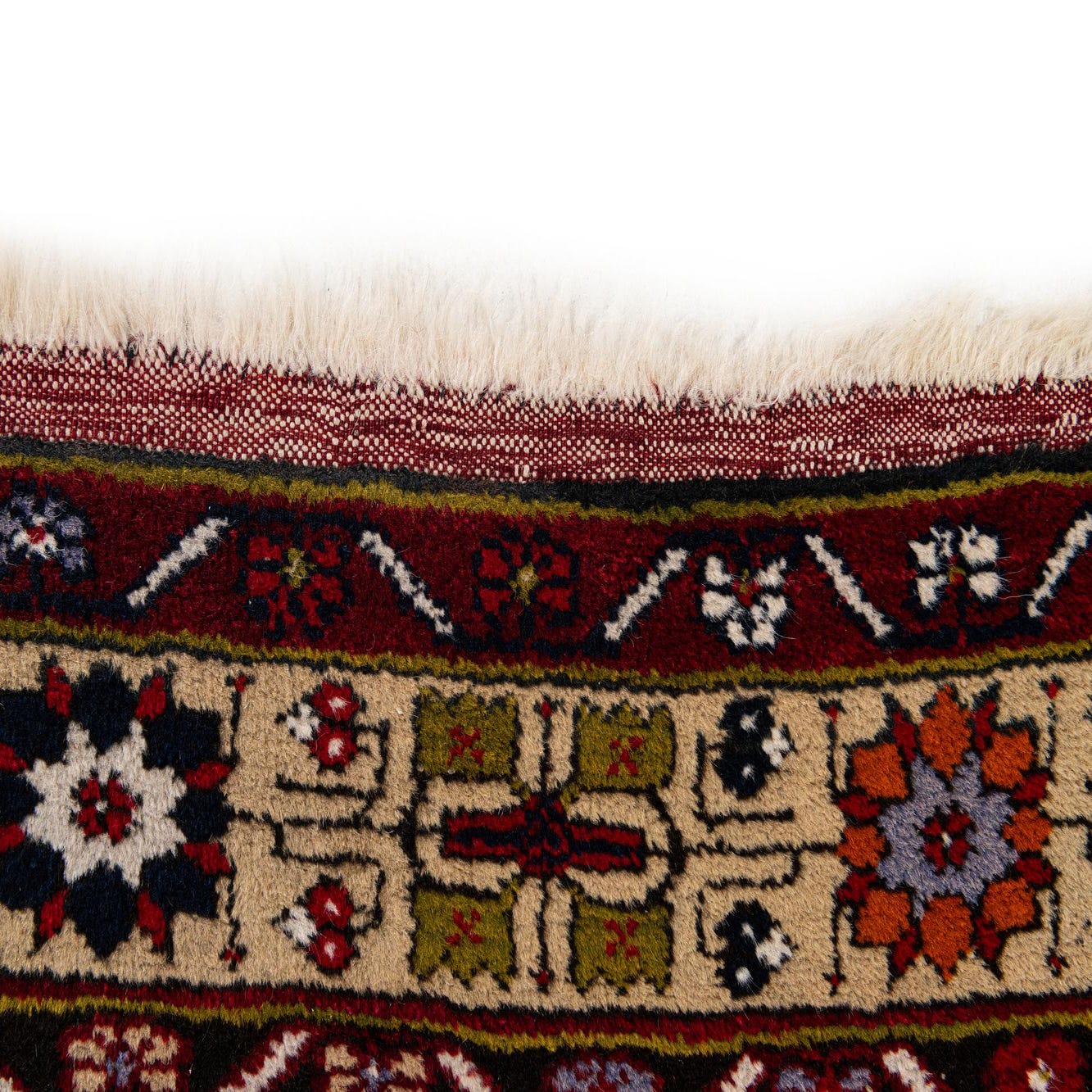 In Very Good condition, with Missing Fringe, Low Pile Spots, Small Spot Damage. Further details can be seen in the pictures