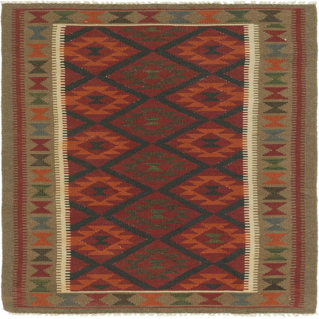 Detail image of  3' 5 x 6' 9  Hand Woven Kilim Maymana Wool Runner Rug