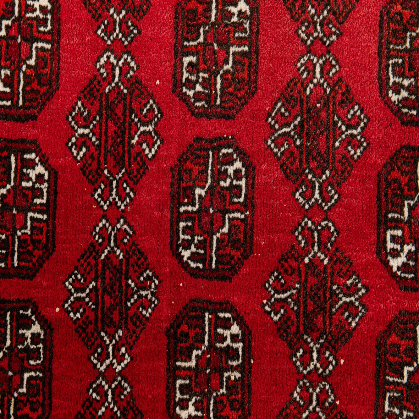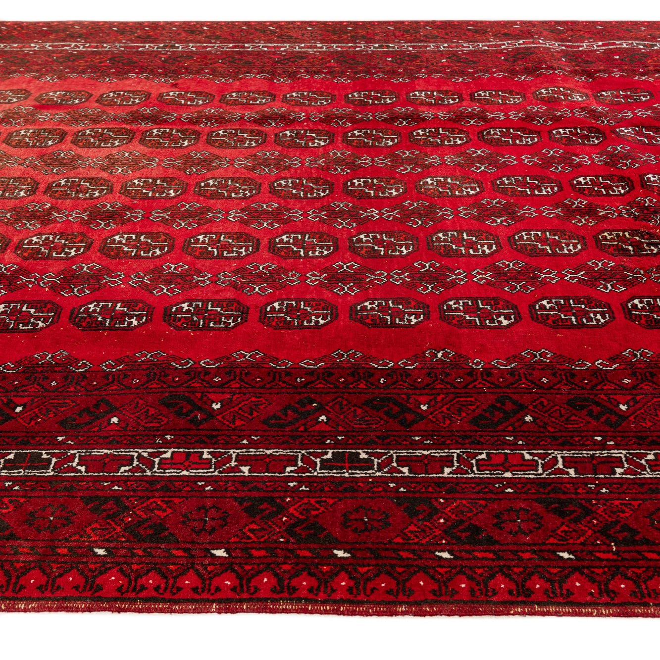 A 7x10 rectangular Rugs.com Afghan Akhche rug in deep reds with traditional tribal patterns and a thin pile.