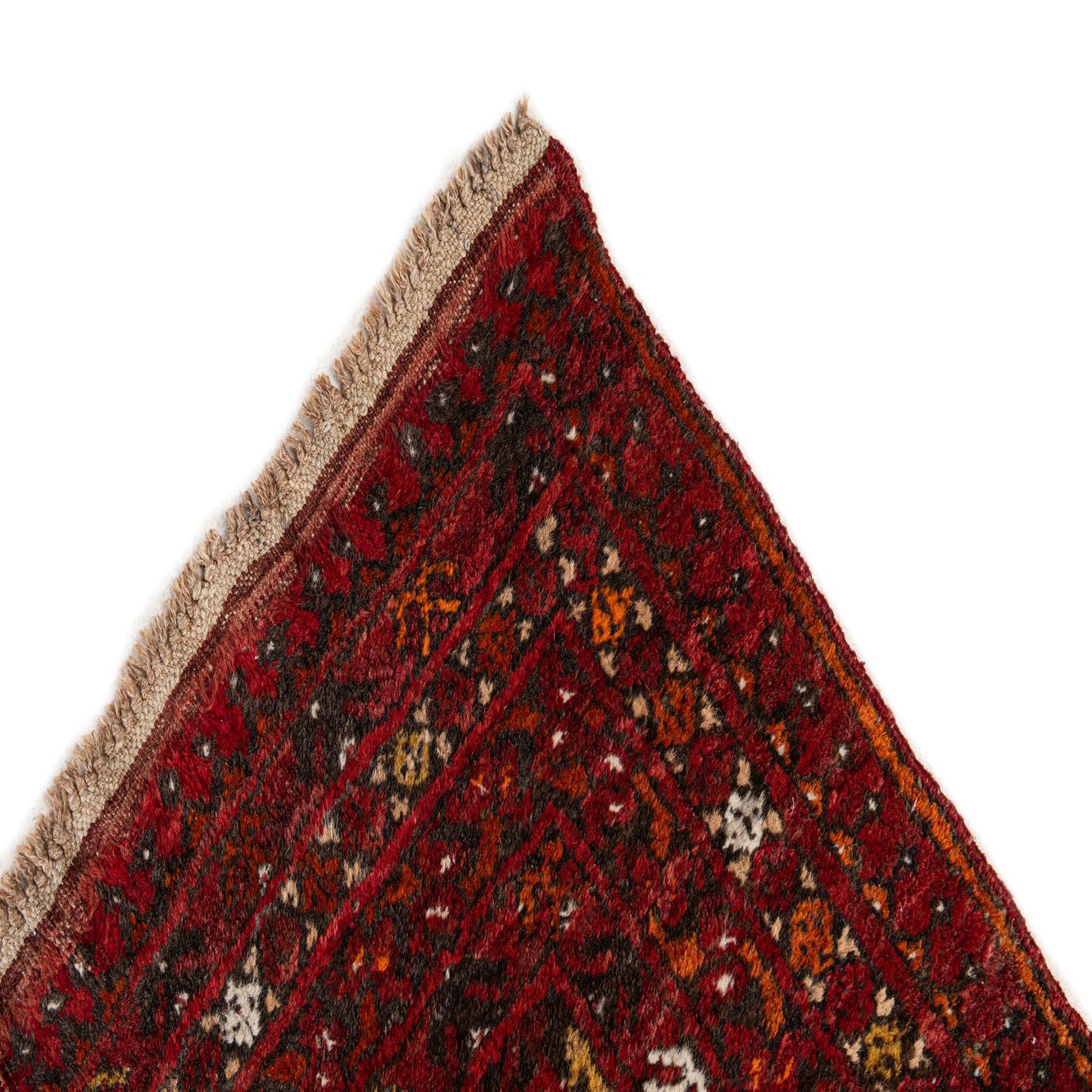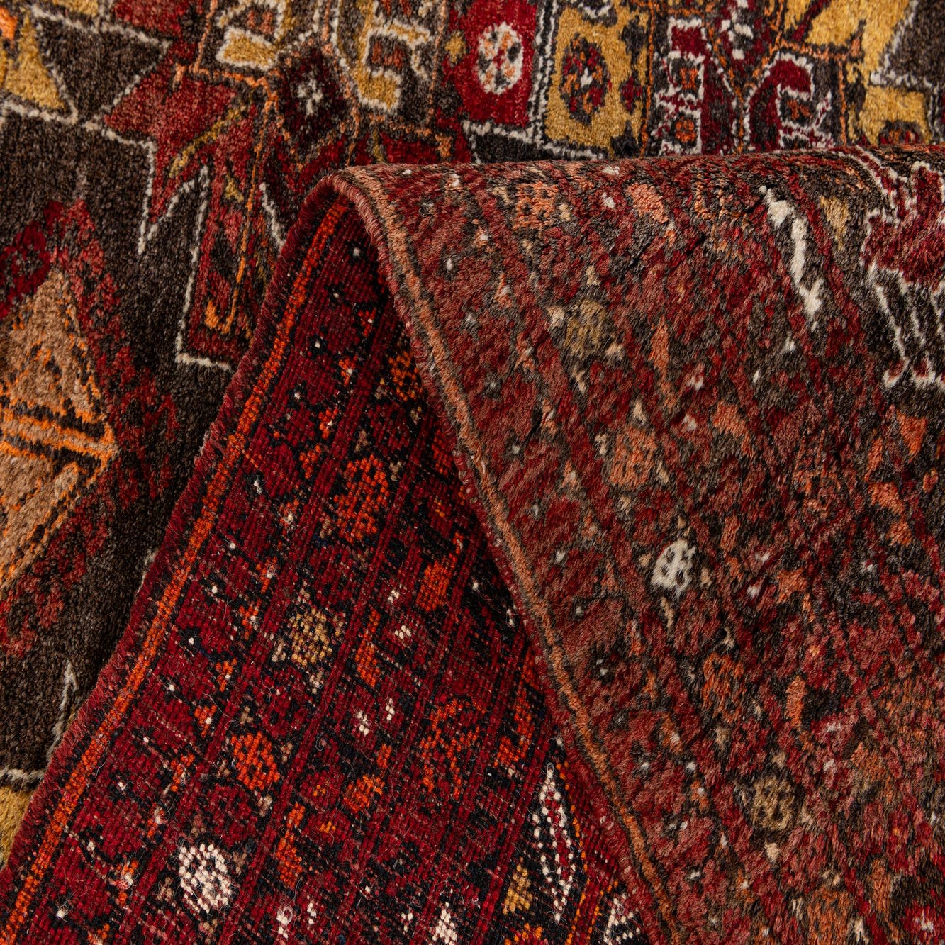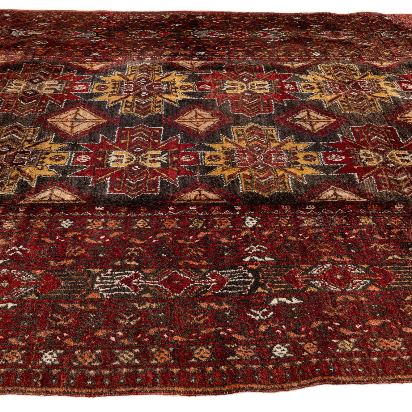 Primary color is Red. Colors in this rug include: Red, Black, Ivory, Yellow, Orange.