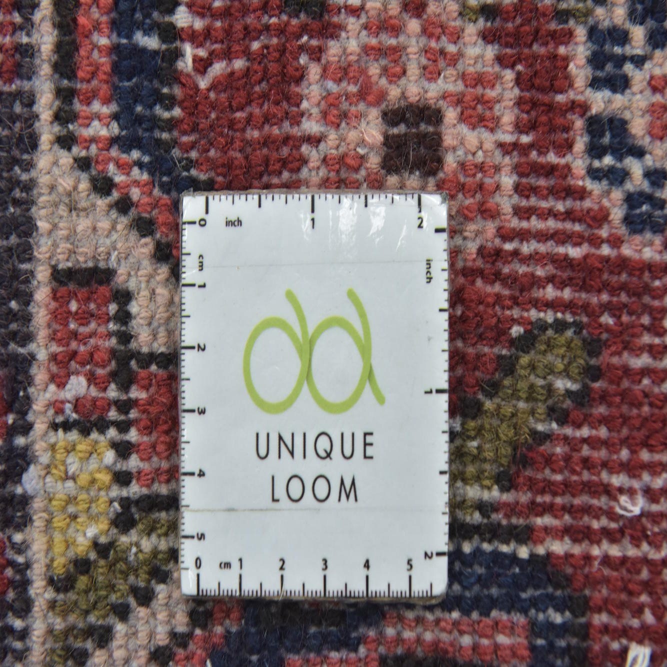 Primary color is Red. Colors in this rug include: Red, Black, Blue, Green, Maroon, Olive, Orange, Salmon, Puce.