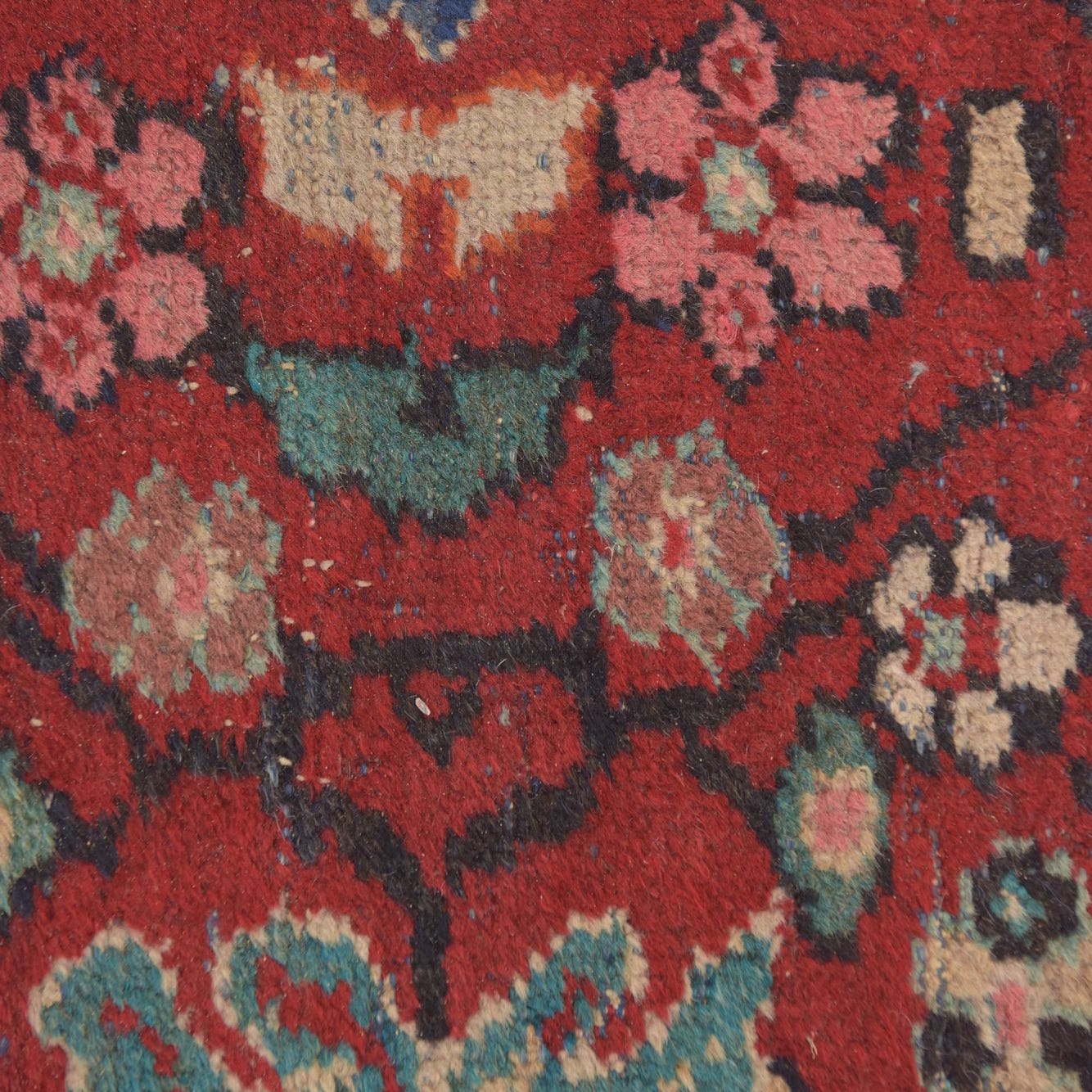Primary color is Red. Colors in this rug include: Red, Beige, Black, Blue, Brown, Green, Ivory, Navy Blue, Pink.