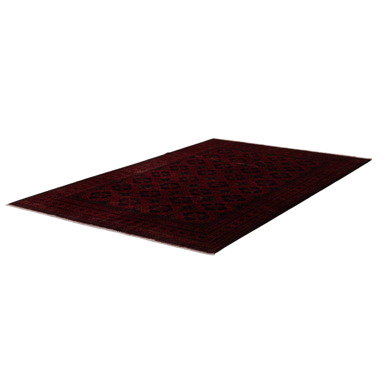 Primary color is Red. Colors in this rug include: Red, Black, Brown.