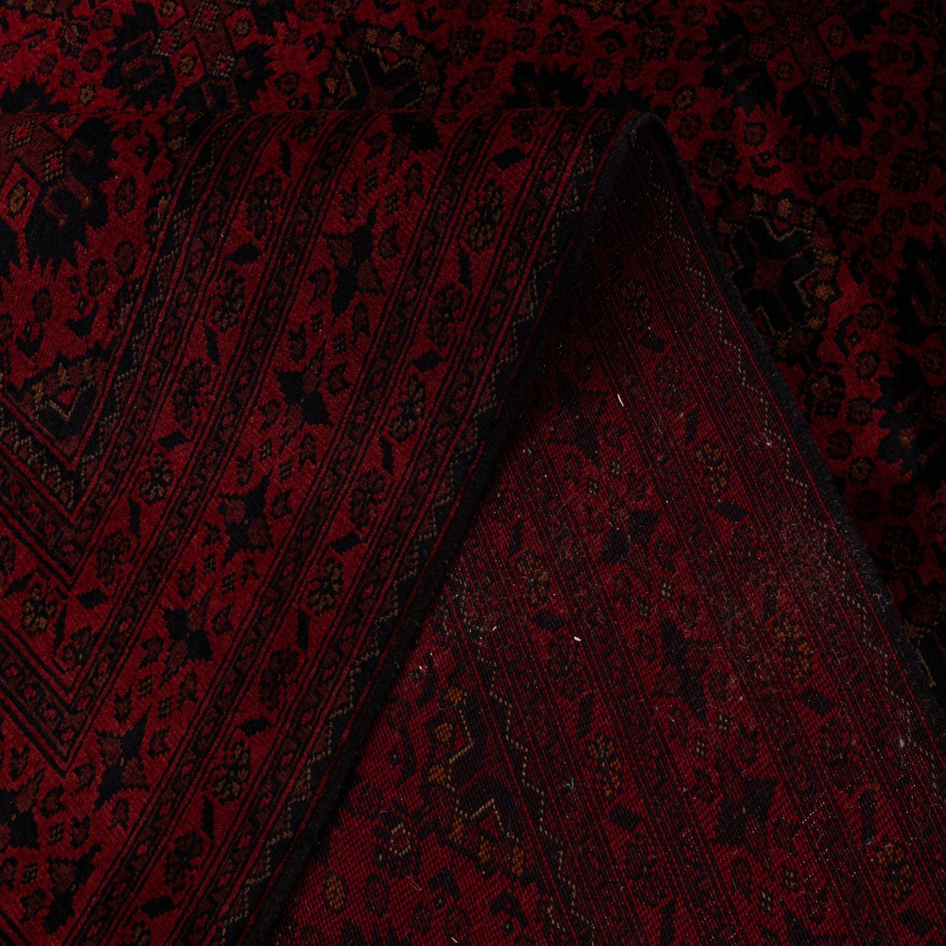 A 7x10 rectangular Khal Mohammadi rug in deep red with intricate black and dark red oriental patterns, featuring a detailed border.