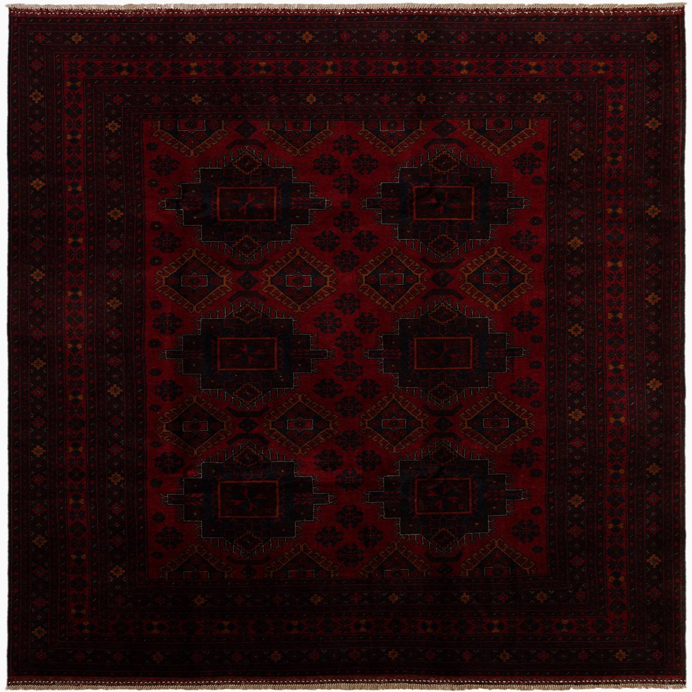 A 7x10 rectangular Khal Mohammadi rug in deep reds with a traditional oriental pattern featuring dark geometric medallions and a detailed border.