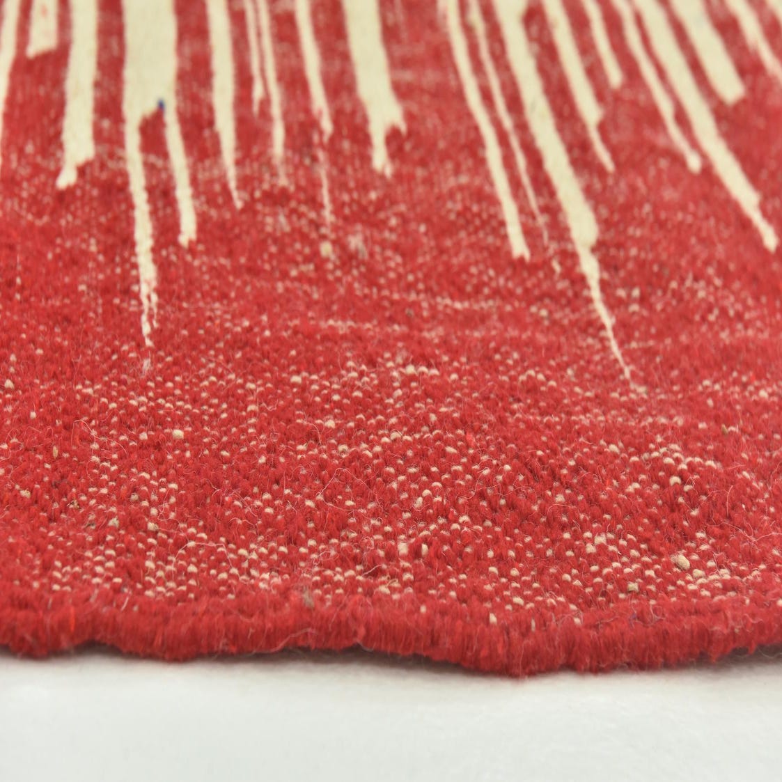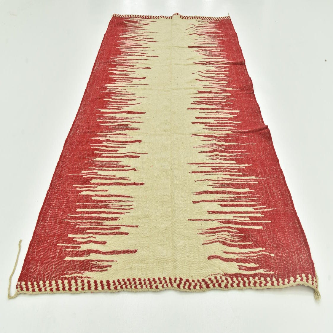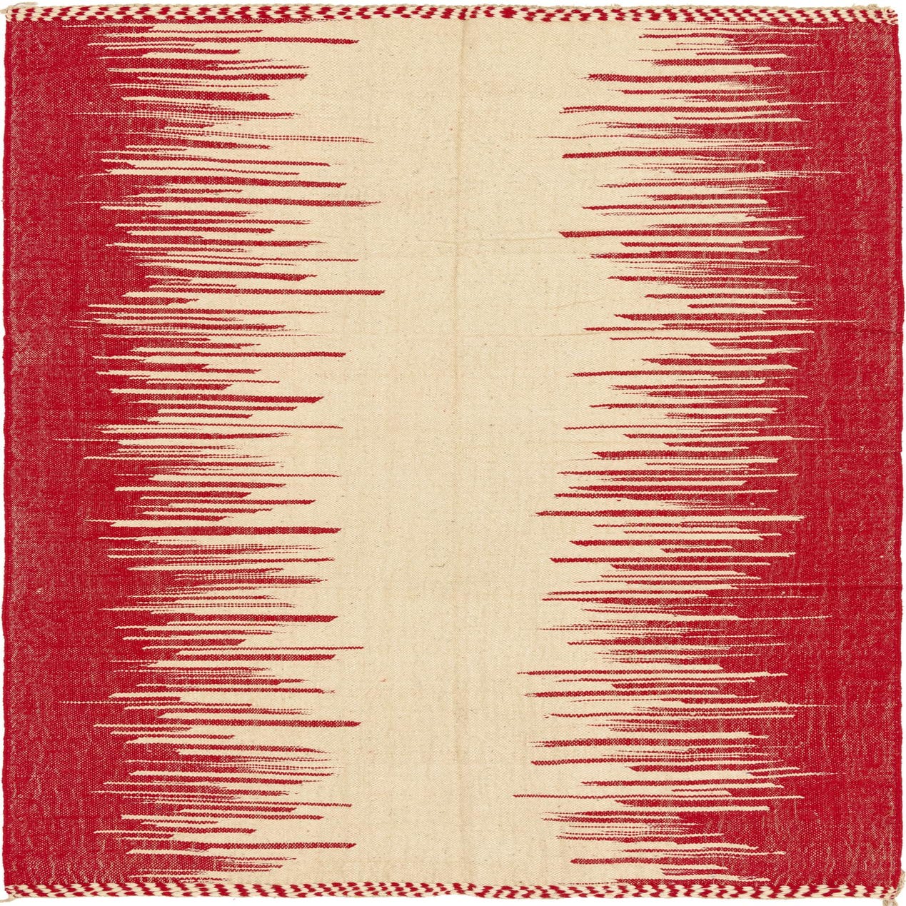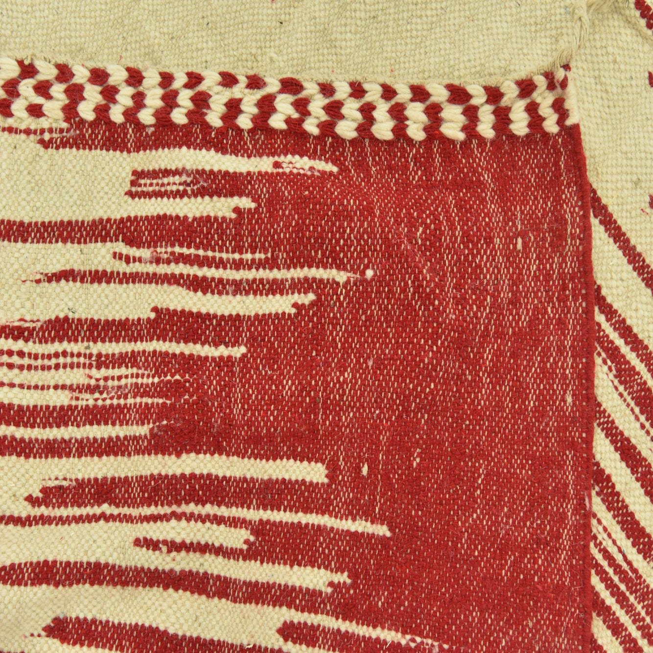 Primary color is Red. Colors in this rug include: Red, Ivory.