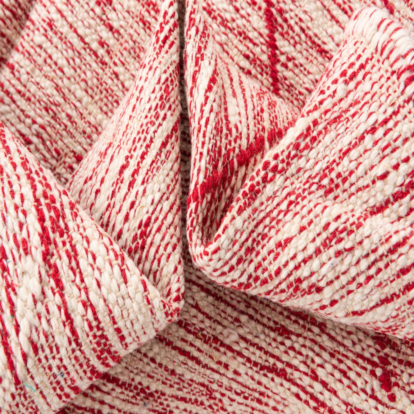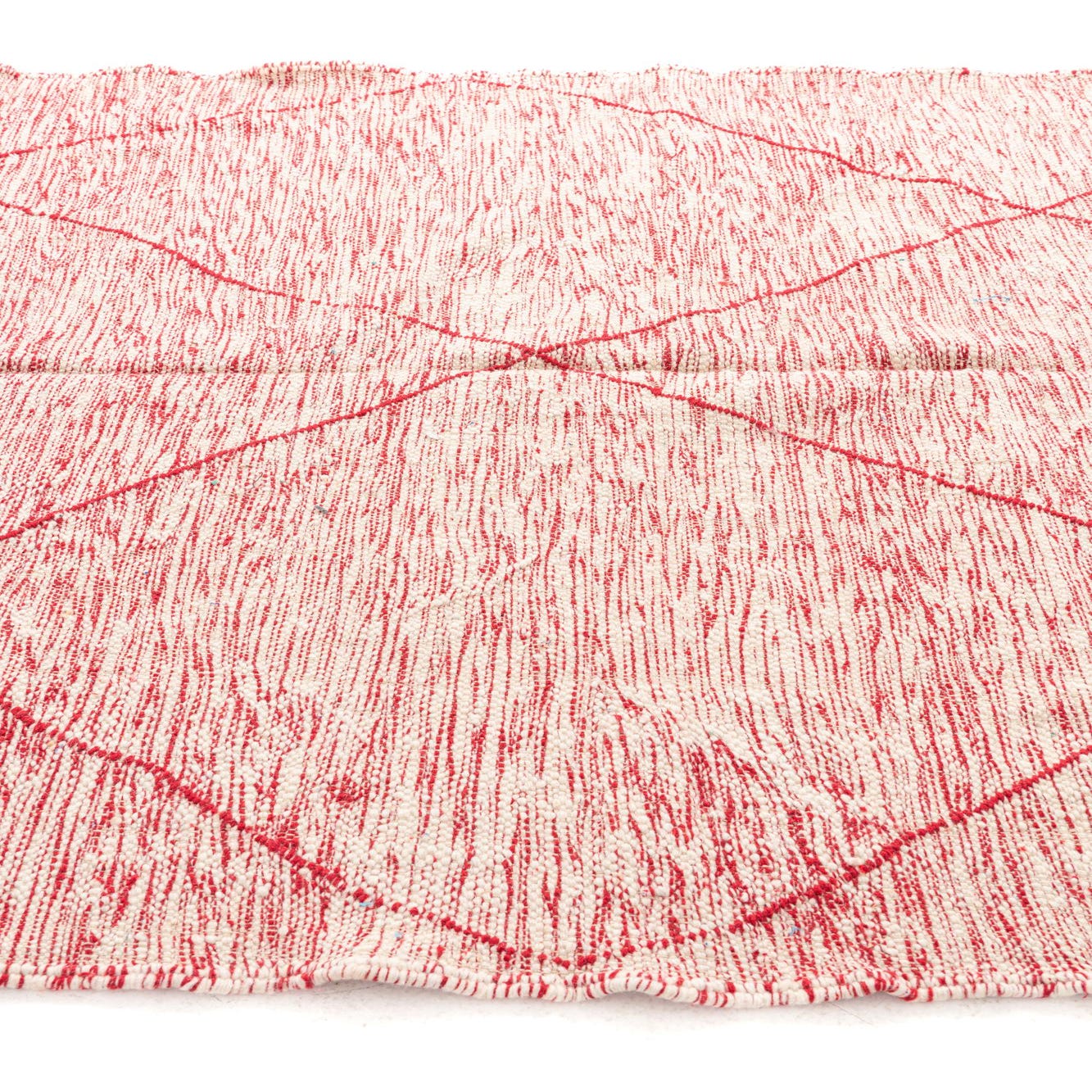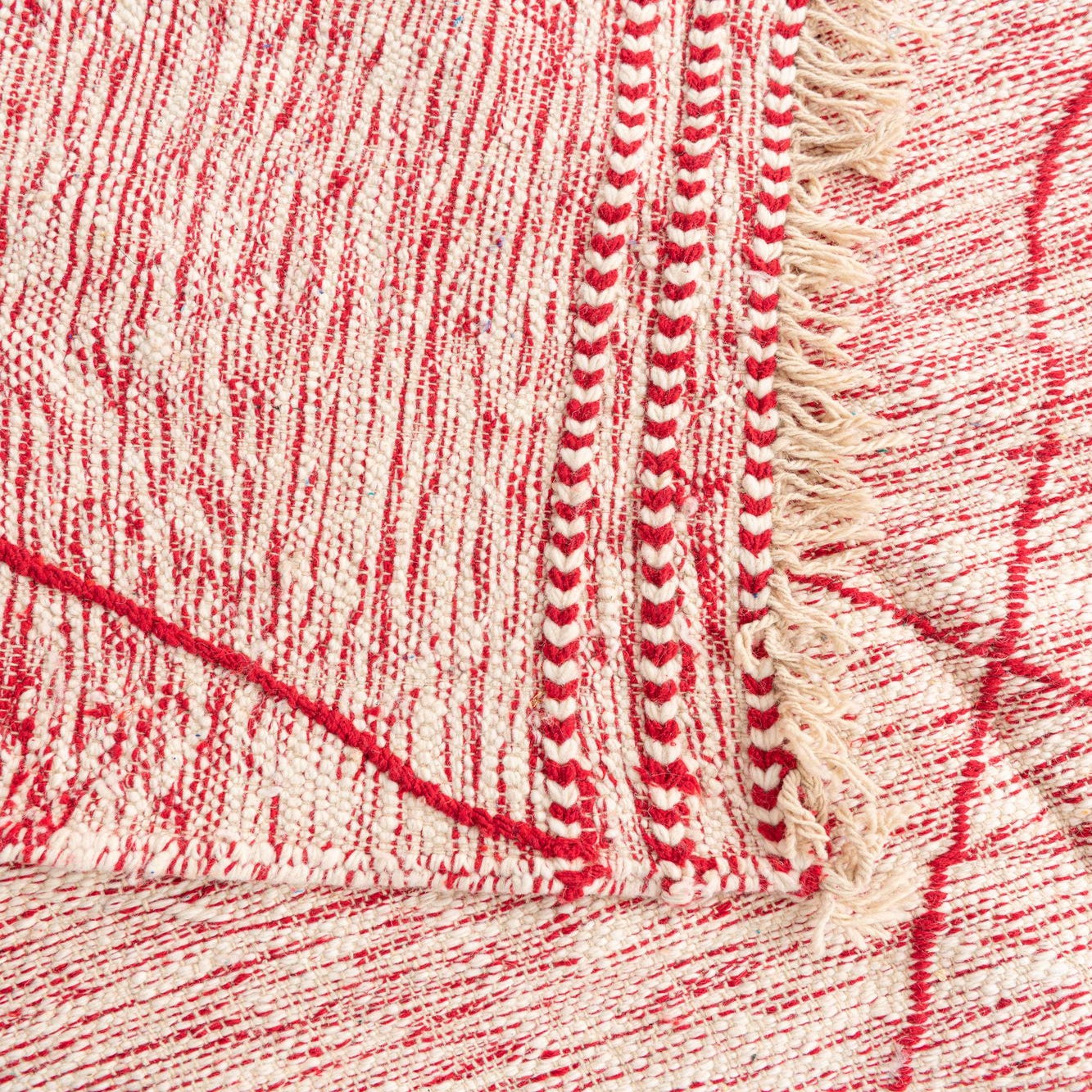 Primary color is Red. Colors in this rug include: Red, Ivory.