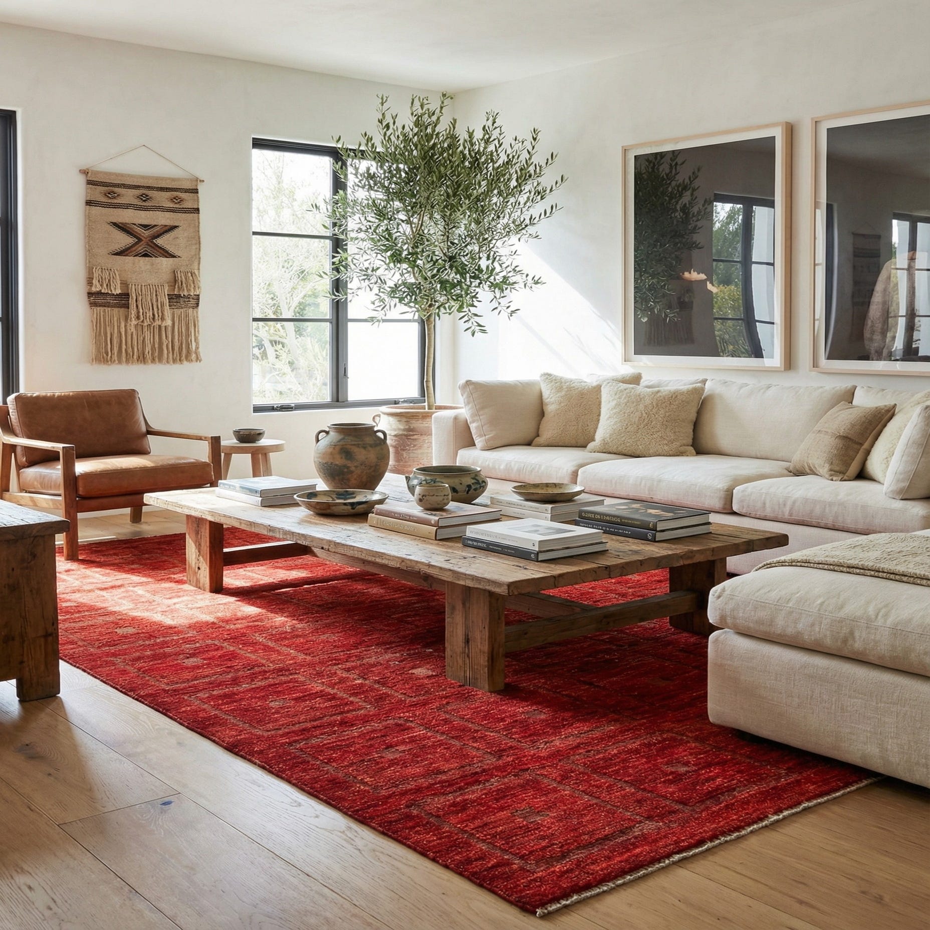 Primary color is Red. Colors in this rug include: Red, Brown, Burgundy.