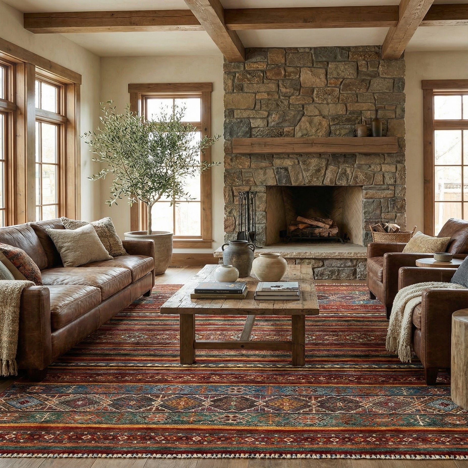 This rug's handcrafted texture and dense wool pile highlight the craftsmanship and provide a tactile experience underfoot. Its natural wool composition adds a layer of warmth and comfort to any space.