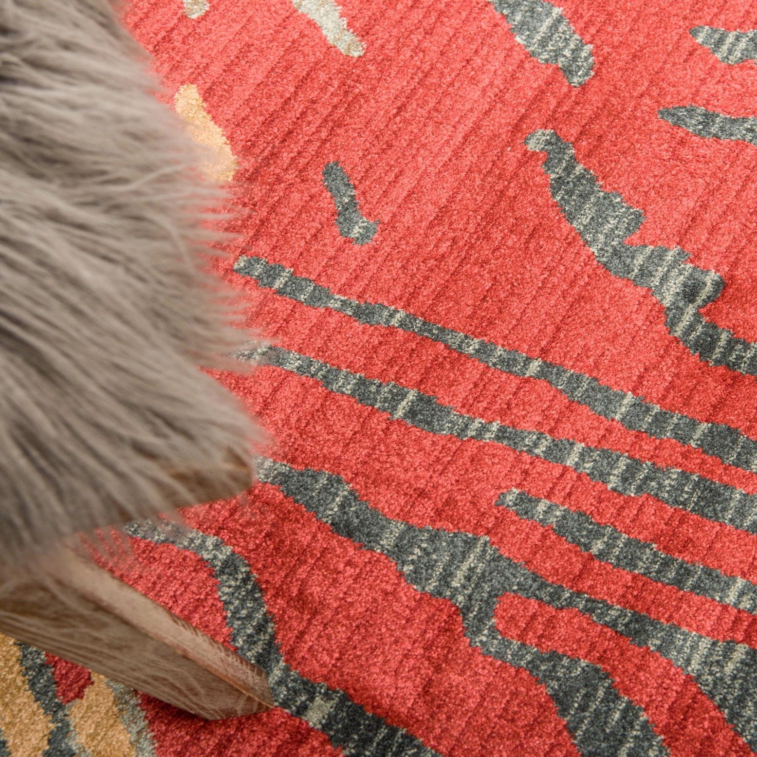 Machine made from 100% polypropylene, the surface has a low, dense pile that feels smooth and slightly cushioned underfoot while holding the rug’s crisp pattern. The round shape makes it an easy choice to anchor a circular dining table, define a conversation area in a living room, or add color and shape to a bedroom. It pairs well with warm wood tones, leather seating, or neutral upholstery, and also complements layered textures like woven throws or matte metal accents.