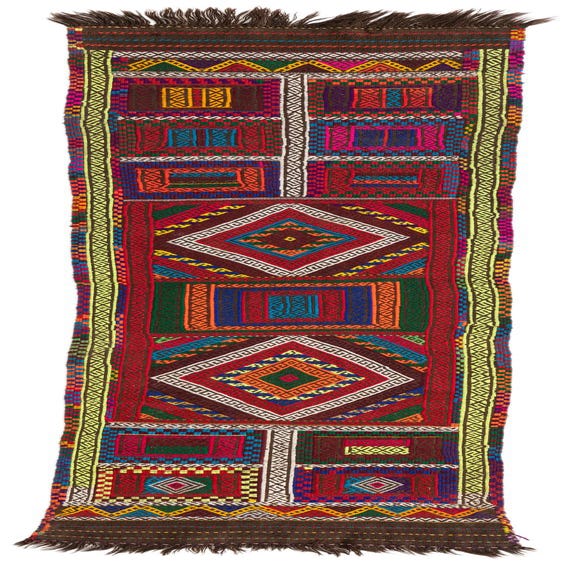 Primary color is Red. Colors in this rug include: Red, Blue, Brown, Green, Ivory, Orange, Yellow, Purple, Pink.