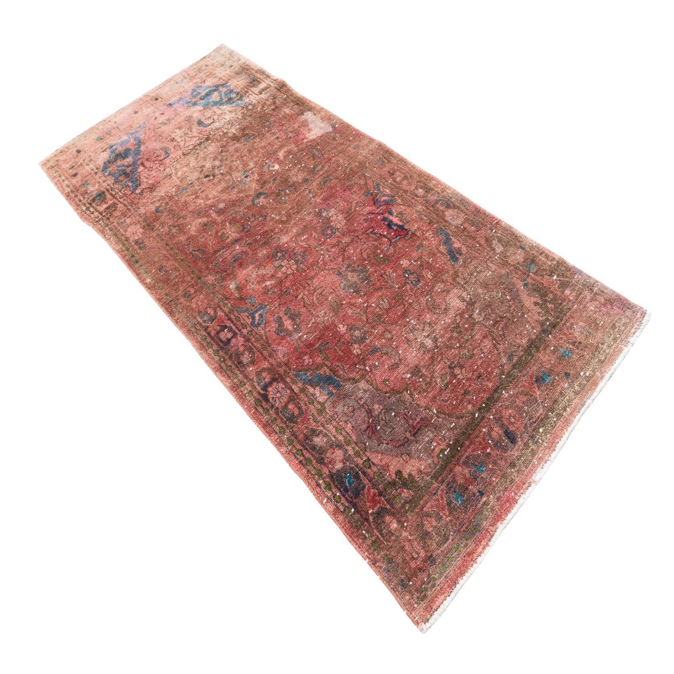 This Persian Ultra Vintage rug is an antique Persian Rug that has been washed, over-dyed, and then shaved down to a low pile. Look at the detail pictures to fully appreciate the uniqueness of this piece.