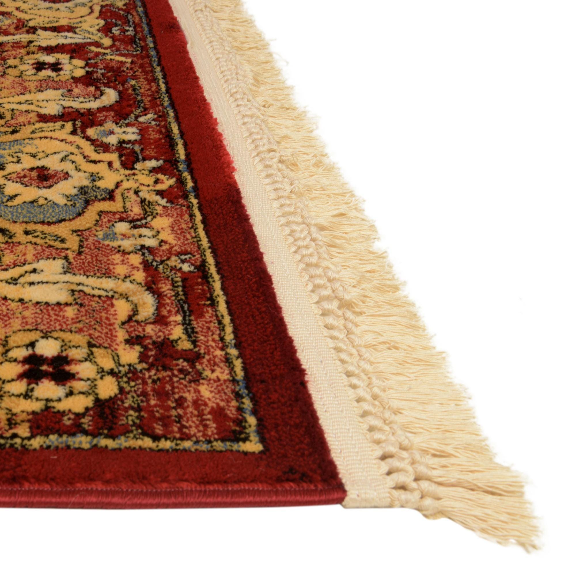 Machine made of 100% polypropylene, the rug has a low, dense pile that feels smooth and substantial underfoot. Running your hand over the surface reveals a soft, slightly velvety texture with defined patterning and subtle sheen from the synthetic yarns. It pairs well with warm wood tones, leather seating or deep blue upholstery and brings a cohesive anchor to a formal living room, study or dining area. The palette and traditional motifs also work in transitional spaces where antique furnishings meet contemporary accents.