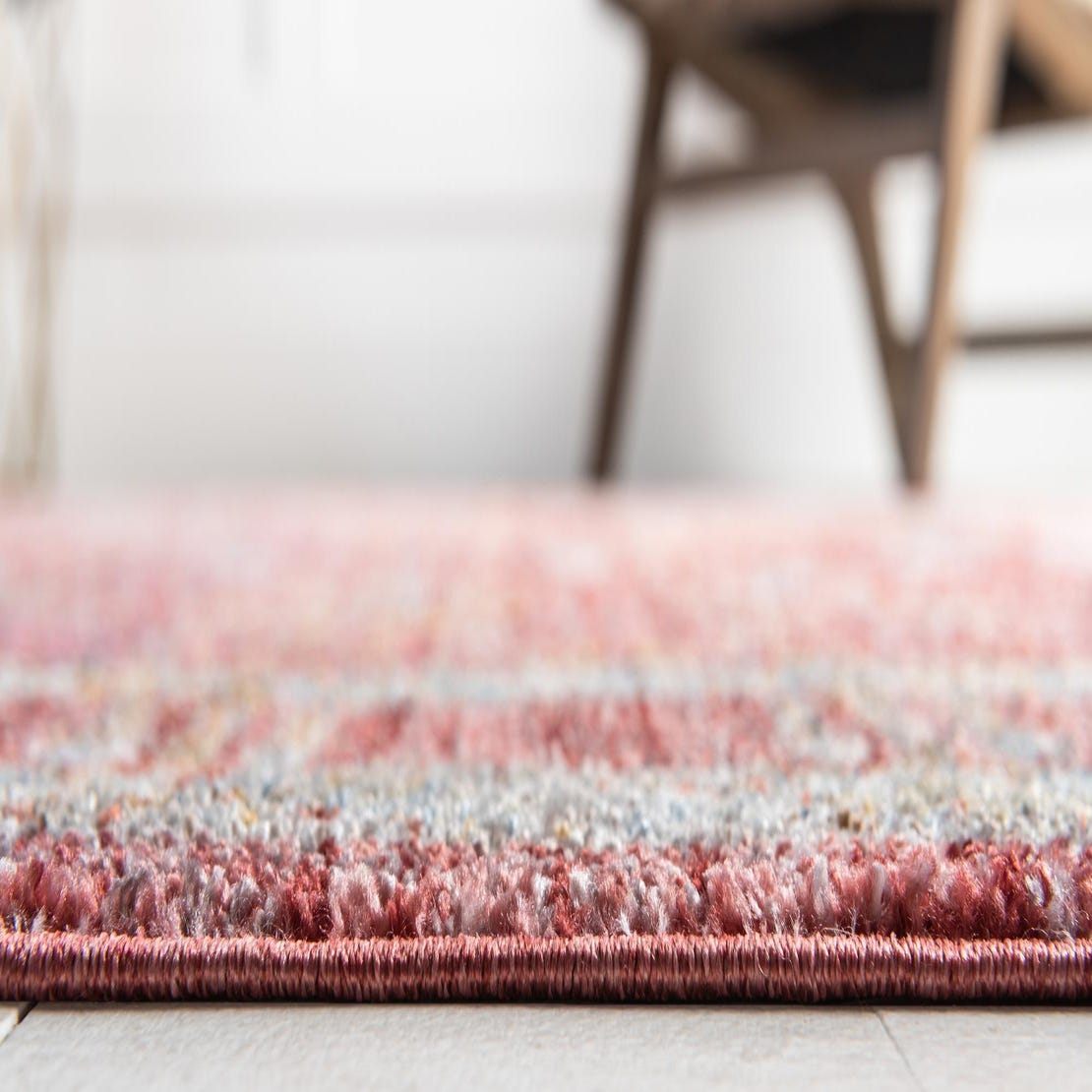 Crafted using machine-woven, 100% polyester space-dyed yarn, the rug offers a plush texture that is pleasing underfoot. The material creates a slight luster that subtly catches the light, adding depth to the rug's appearance. Its stain-resistant and shed-free properties make it a durable choice for high-traffic areas.