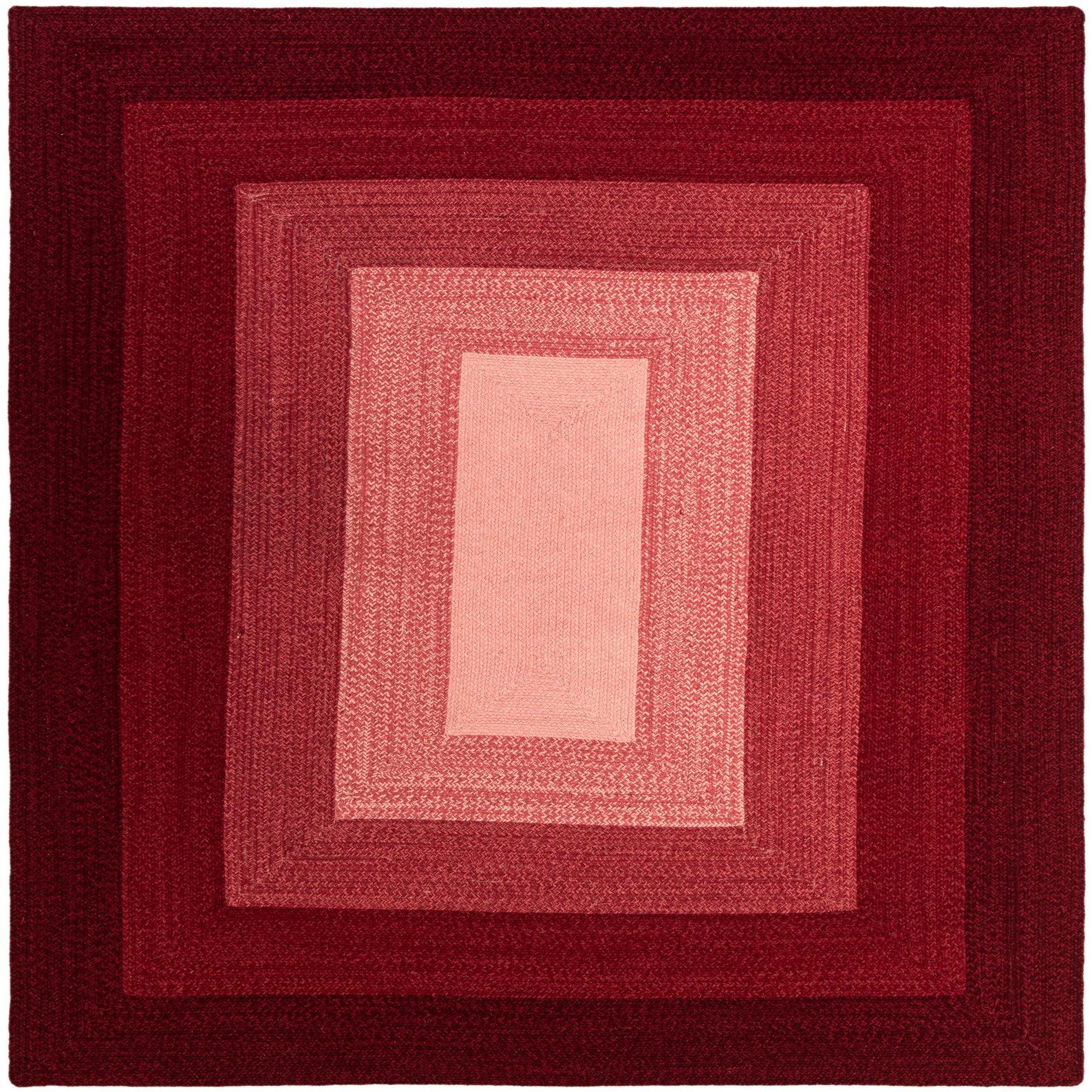 A rectangular 8x10 Hand Braided Wool rug by Rugs.com featuring a modern design with concentric rectangles in varying shades of red, from deep maroon to light coral.