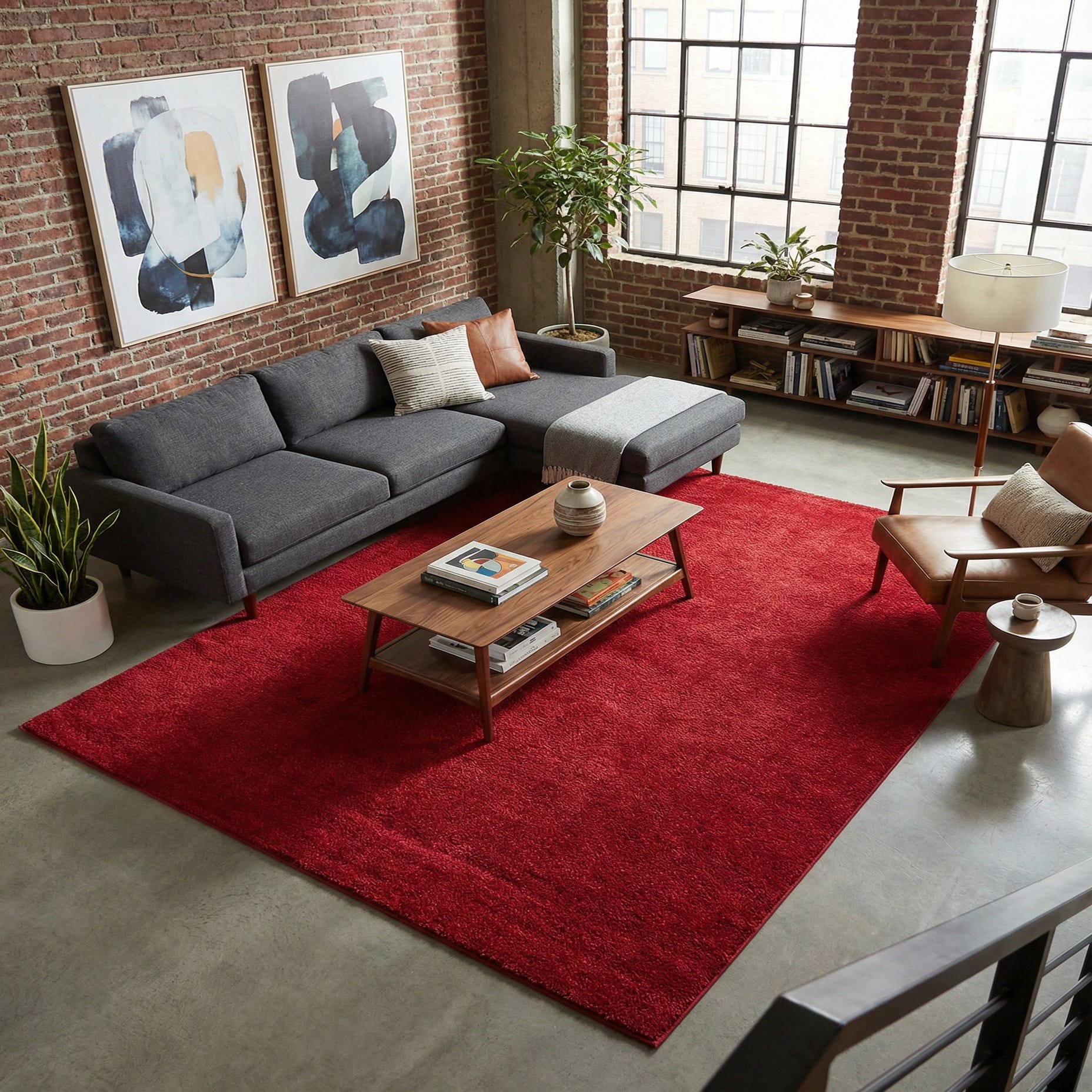 Machine-made from 100% polypropylene, the rug’s frieze-style pile has a dense, slightly twisted texture that feels soft and cushioned underfoot while offering subtle surface variation and a gentle sheen. Place it beneath a living room seating group to define the conversation area, layer it in a bedroom to introduce cozy color at the foot of the bed, or use it in a study or media room to bring warmth to darker woods and metal accents. It pairs naturally with mid-century and contemporary furnishings, and it can also balance eclectic or transitional schemes when combined with neutral upholstery and accent pieces in complementary tones.