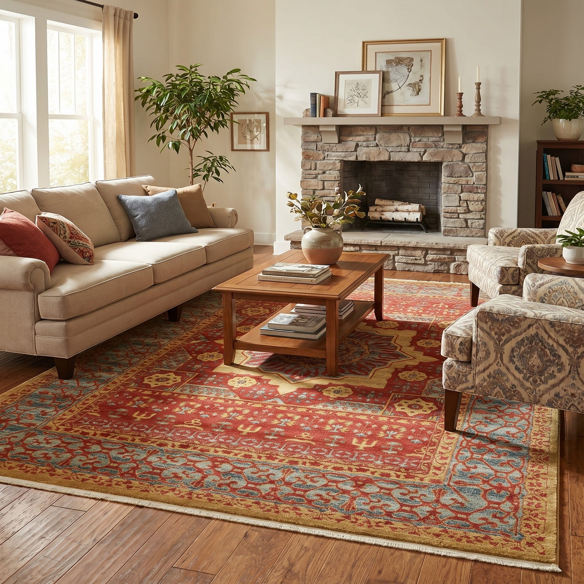 I love this rug. It really makes my living room feel warm and cozy. I'm looking forward to cooler weather and a nice fire going.