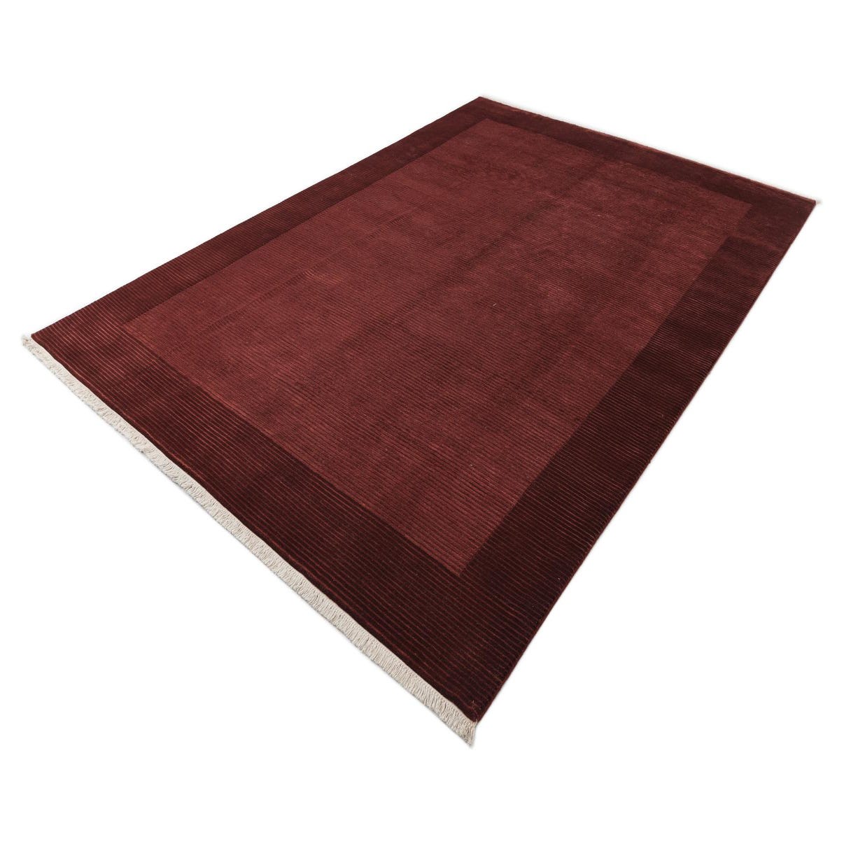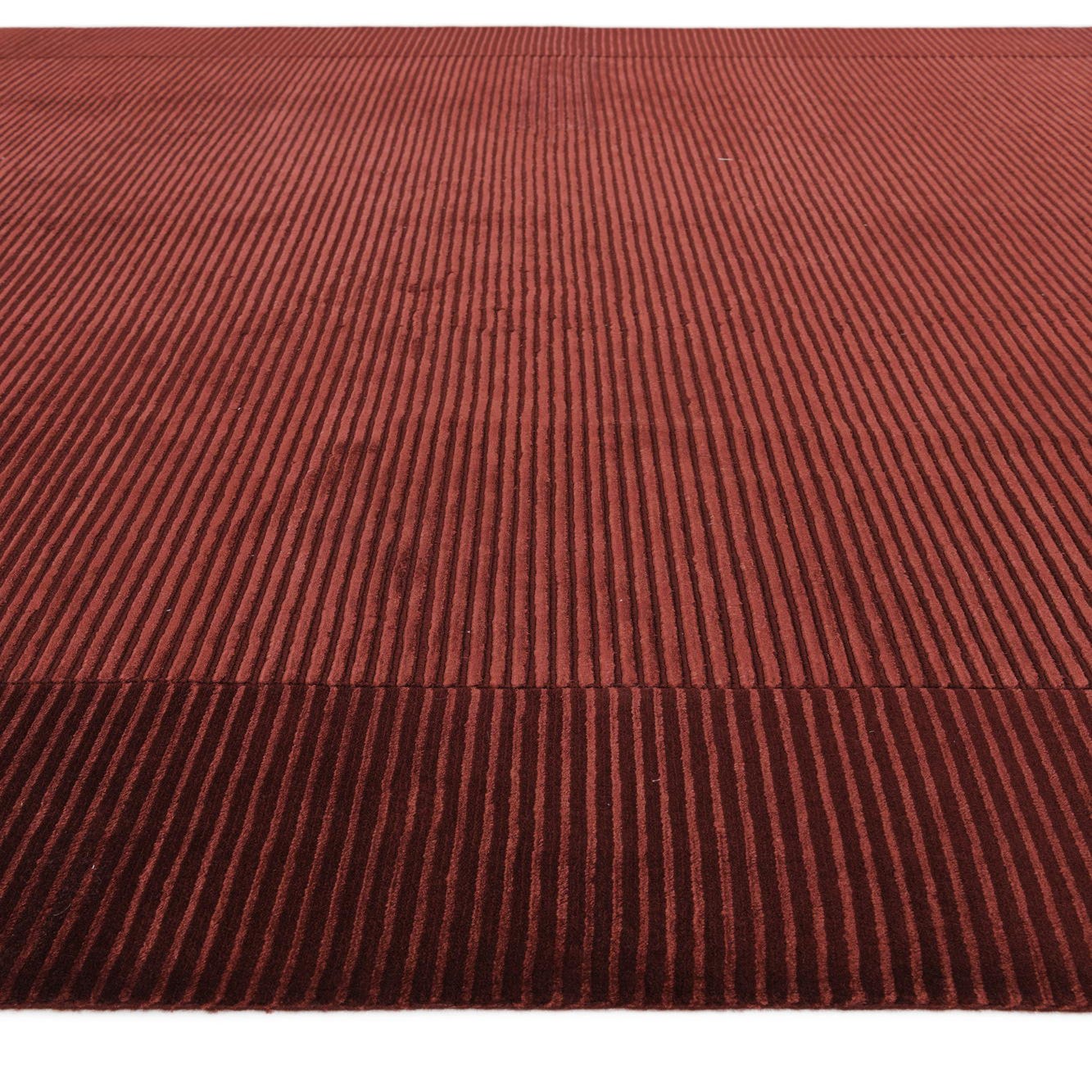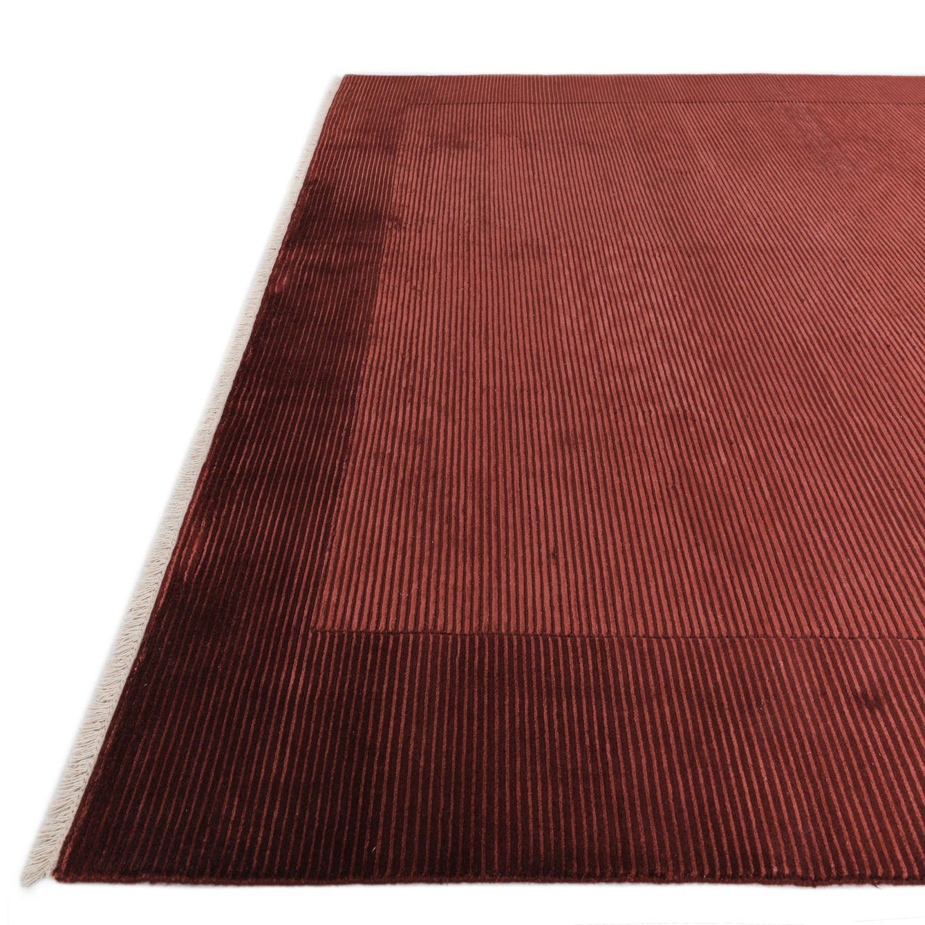 A rectangular 8x11 Darya collection rug in deep red, featuring a subtle modern striped pattern and a darker red border.