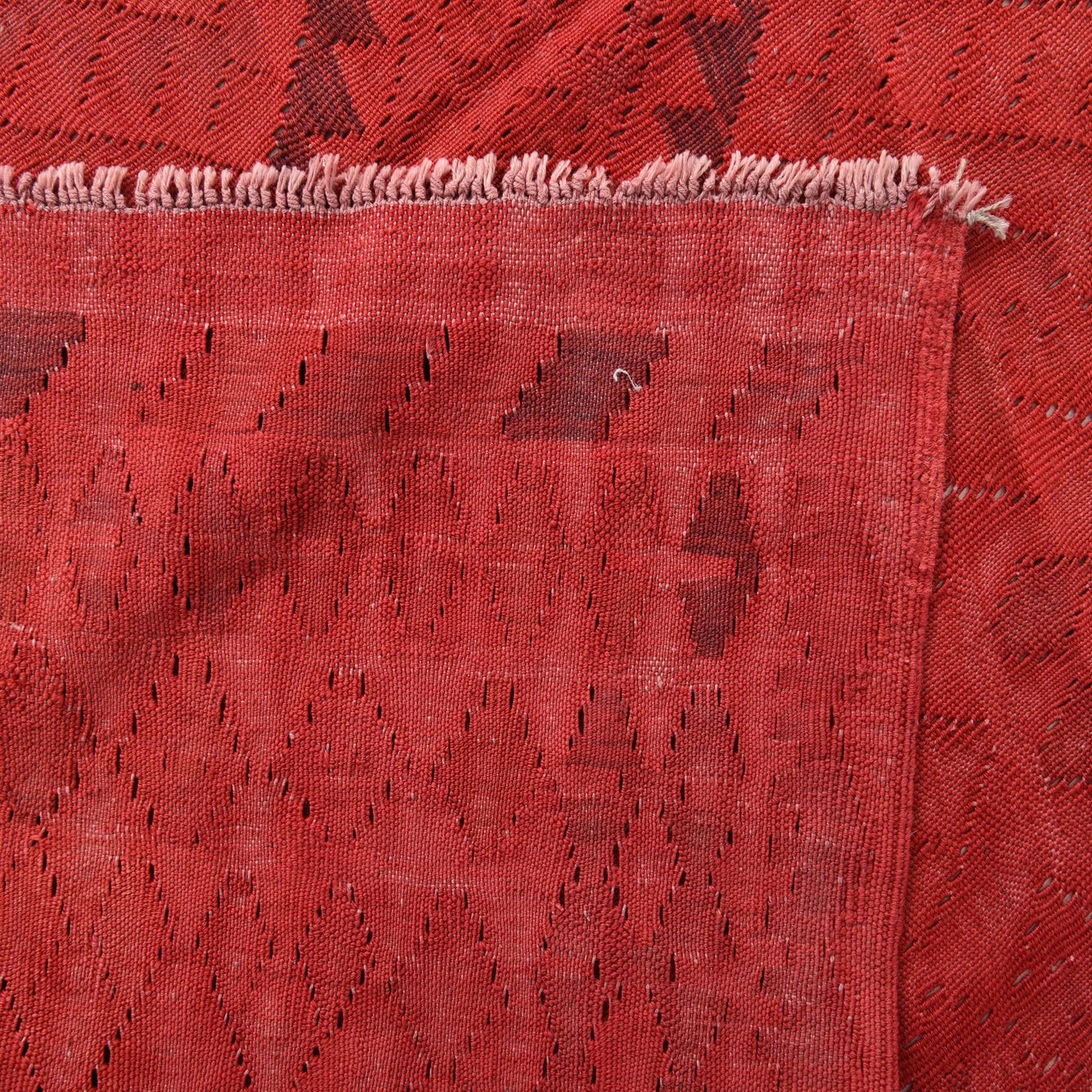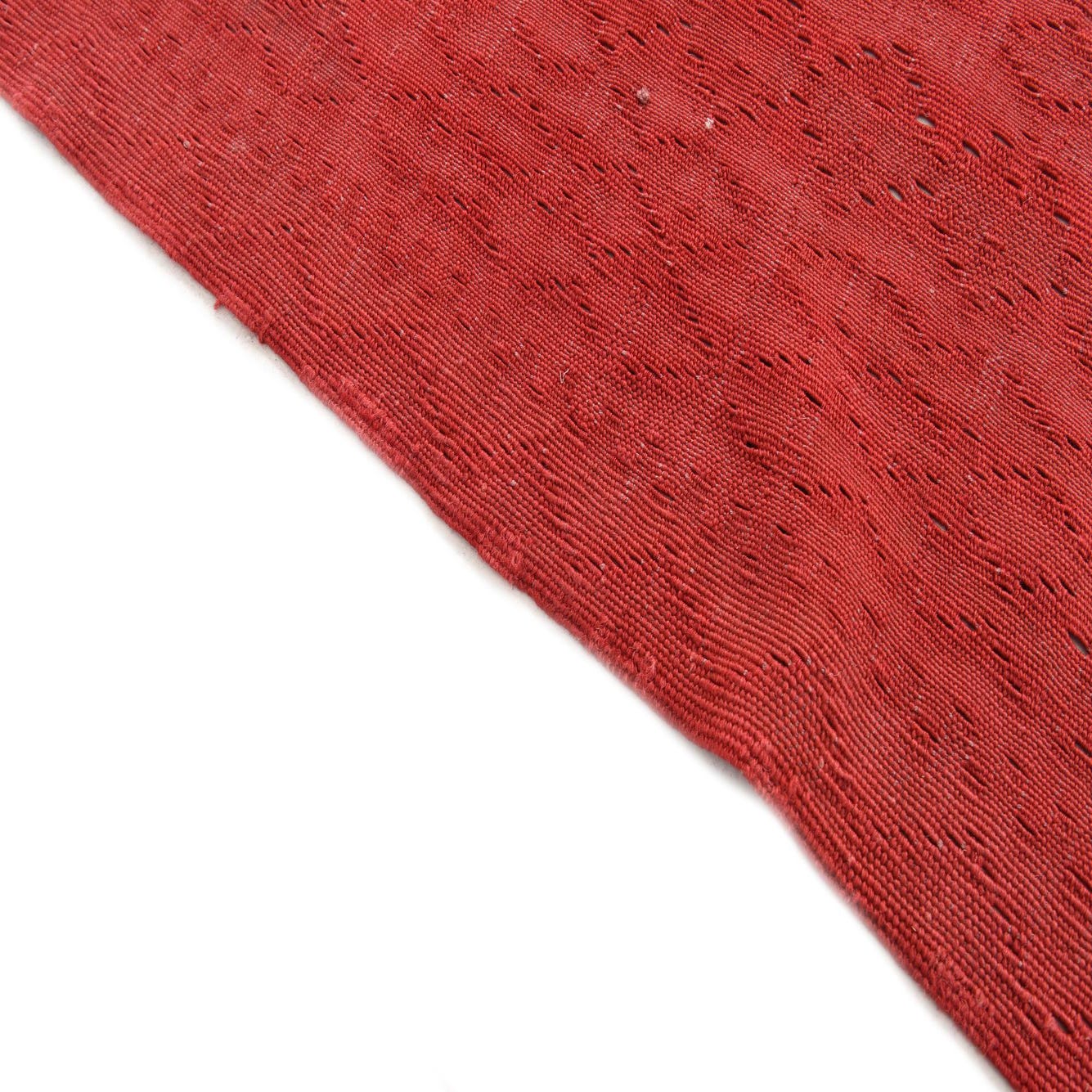 A handmade 8x11 rectangular Kilim Fars rug in shades of red with subtle traditional tribal patterns.