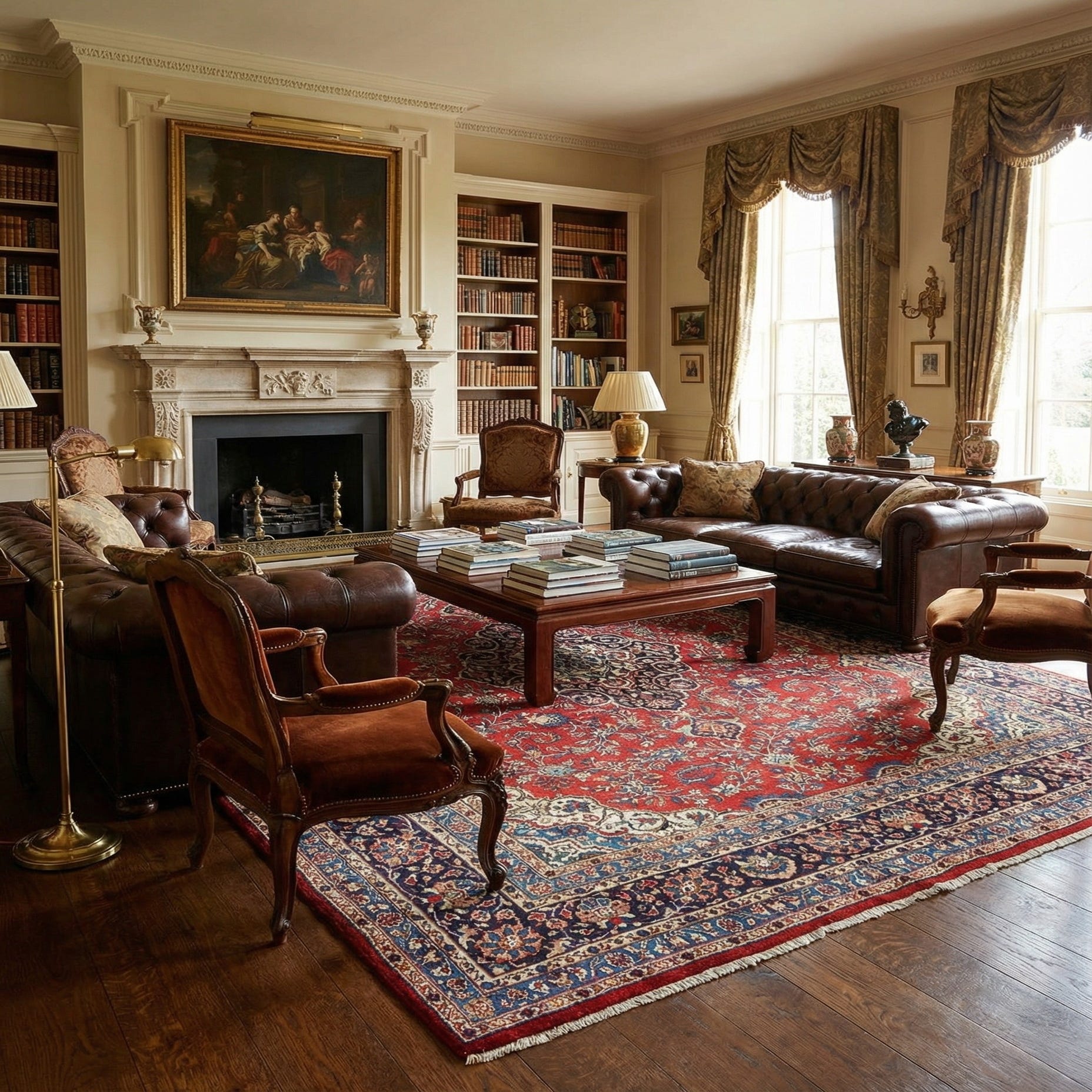 The Mashad rug's classic design and color scheme make it a versatile option suitable for a variety of interior decors. Traditional settings will be complemented by the rug's timeless elegance, while more contemporary spaces can benefit from its rich color as an anchoring element. Its grand size makes it an ideal choice for larger living areas, formal dining rooms, or spacious bedrooms where it will serve as a focal point.