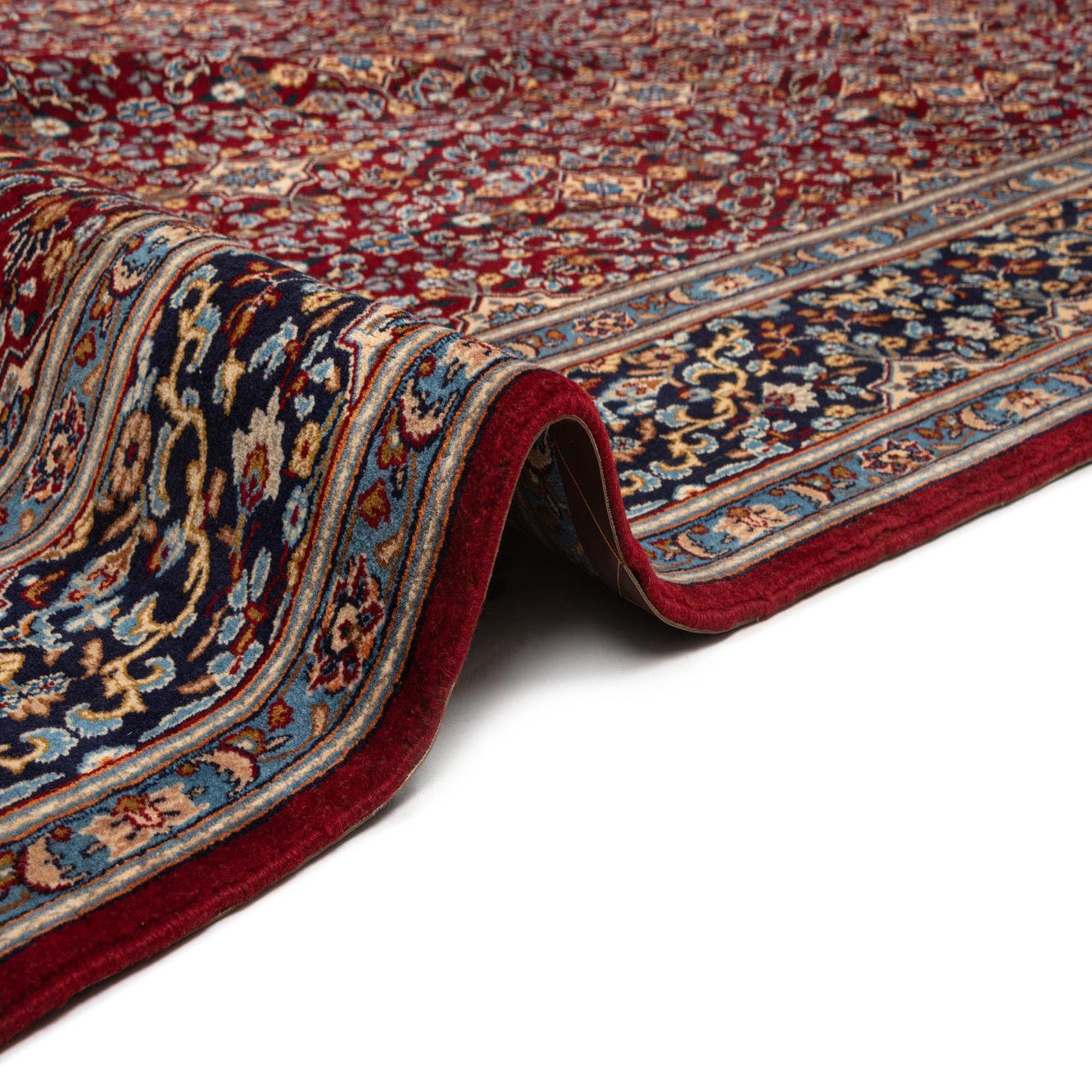 From the Mood collection, this handcrafted 8x11 rug is a testament to traditional craftsmanship and enduring design. Made of 100% wool, the rug's texture is naturally resilient and offers a pleasant underfoot experience. It features a red background with a sophisticated pattern arrayed in dark blue, creating a visually rich and contrasting palette.