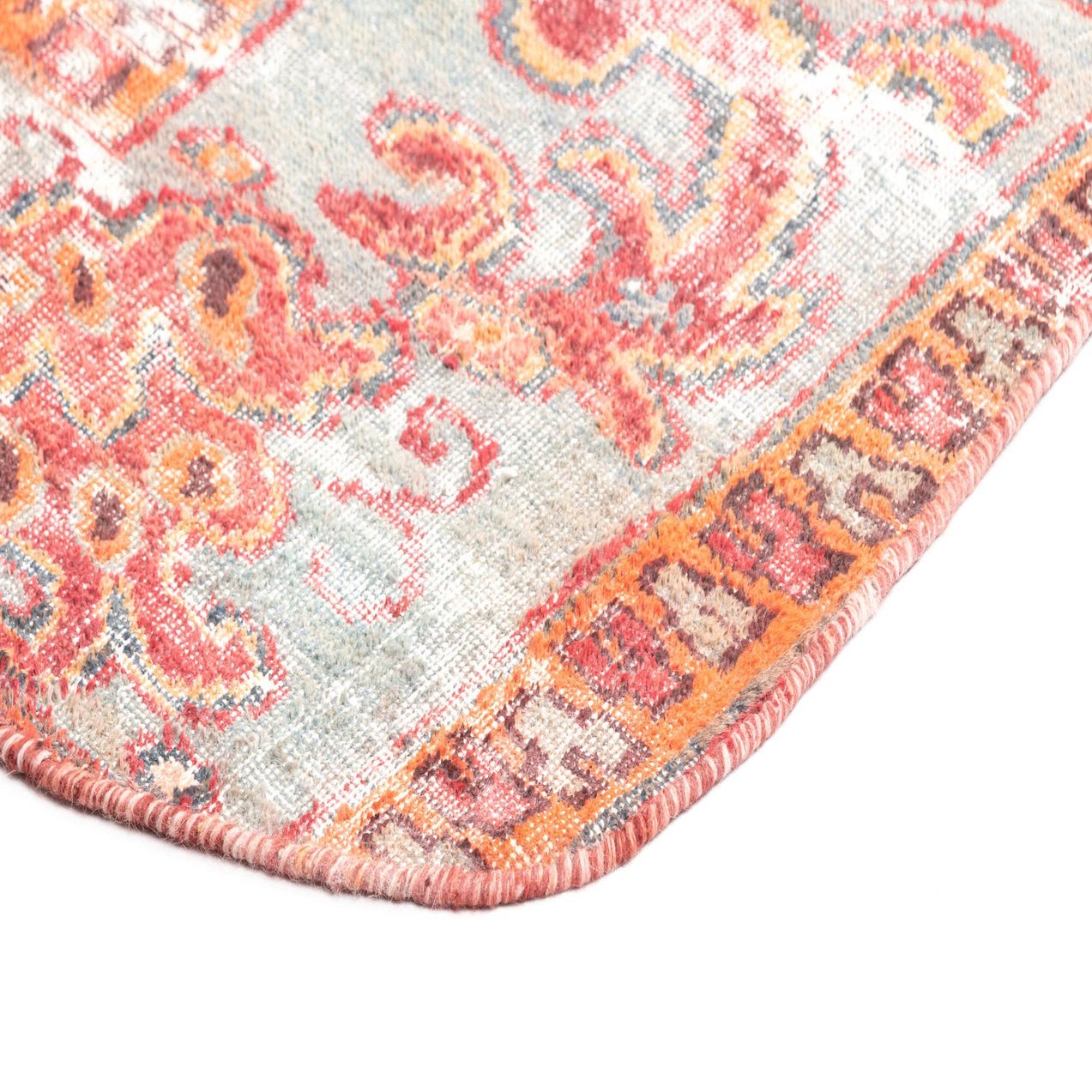 Primary color is Red. Colors in this rug include: Red, Red, Blue, Orange, Brown.