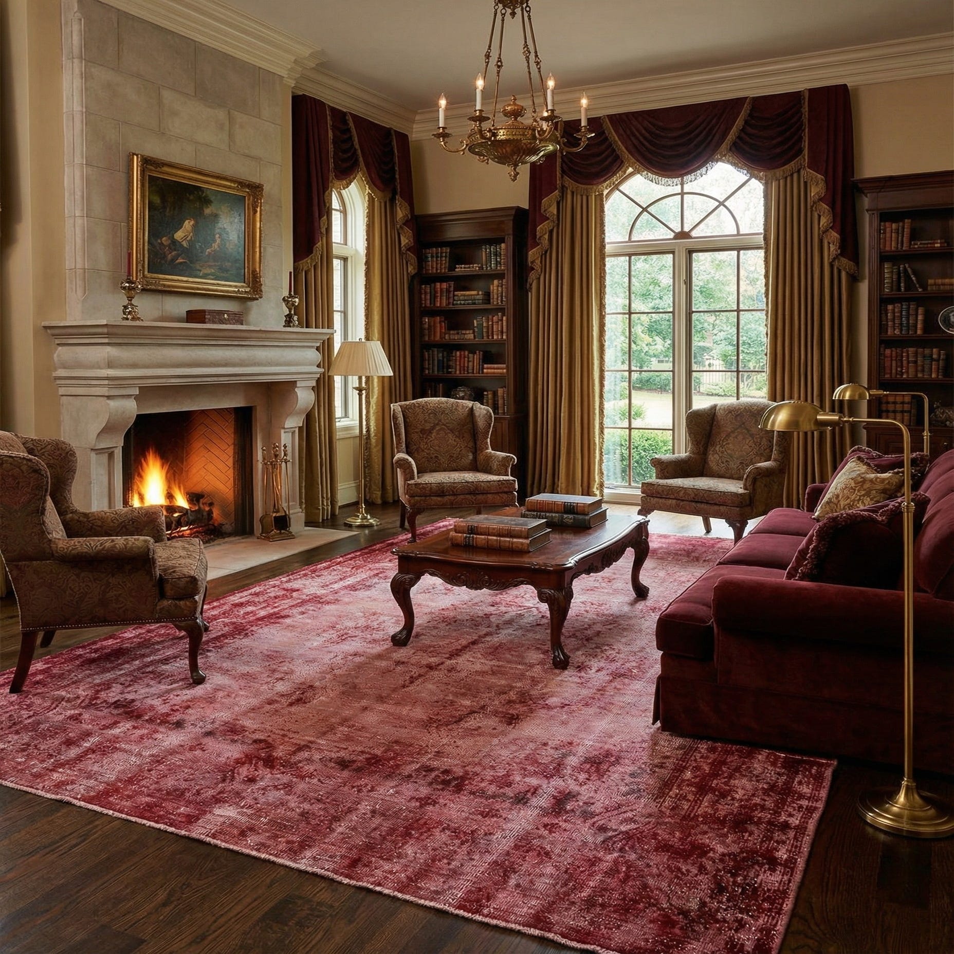 This piece would integrate seamlessly into interiors where a touch of vintage charm is desired. It could serve as an anchor in a living room with classic furniture, or add warmth to a modern minimalist space where its texture and color depth can contrast sleek lines. Furthermore, it would pair well in dining areas with rich wood tones, complementing dark-finished tables and chairs to enhance the overall ambiance of the room.