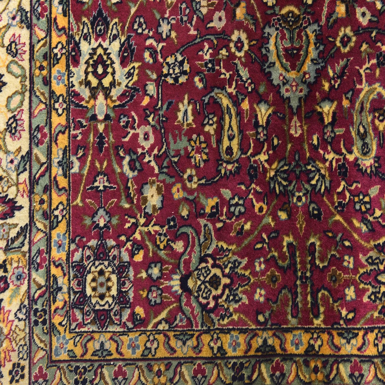 This exquisite area rug would serve as a focal point in a traditional living room, dining area, or large foyer, bringing warmth and historical elegance into the space. Its rich color palette can anchor other decorative elements and foster a feeling of sophistication. It would equally complement classic furnishings in rich woods or serve as a contrasting backdrop for more modern, minimalist pieces that can benefit from its intricate visual interest.