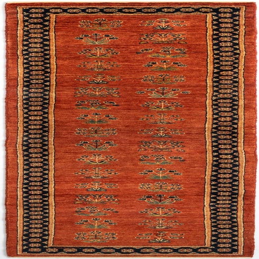 The Luribaft collection presents a 9 Ft Runner, handcrafted with precision from 100% wool, ensuring a high-quality piece that is both durable and soft to the touch. This runner features a warm red background that showcases a series of detailed botanical motifs, artfully rendered in shades of dark blue, olive green, and beige. The pattern is symmetrical and organized in a columnar fashion, giving it a sense of order and sophistication.