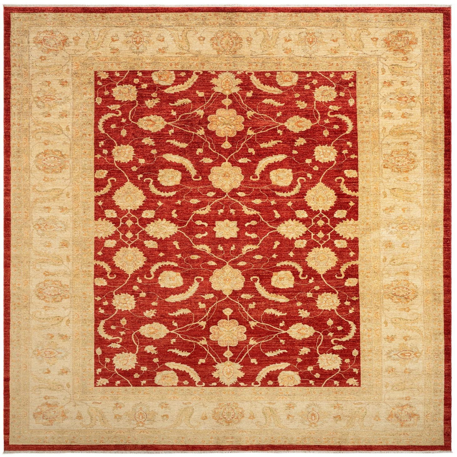 The Kaizar collection presents a distinguished 9x12 hand-made rug crafted from 100% wool, showcasing a rich red background complemented by shades of beige and cream. The rug features a traditional pattern accentuated with floral and vine motifs, conveying a sense of elegance and warmth. The woolen construction offers a plush texture, ensuring both comfort underfoot and durability.