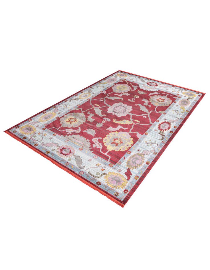 Primary color is Red. Colors in this rug include: Red, Beige, Blue, Ivory, Gray, Yellow, Pink, Light Blue.
