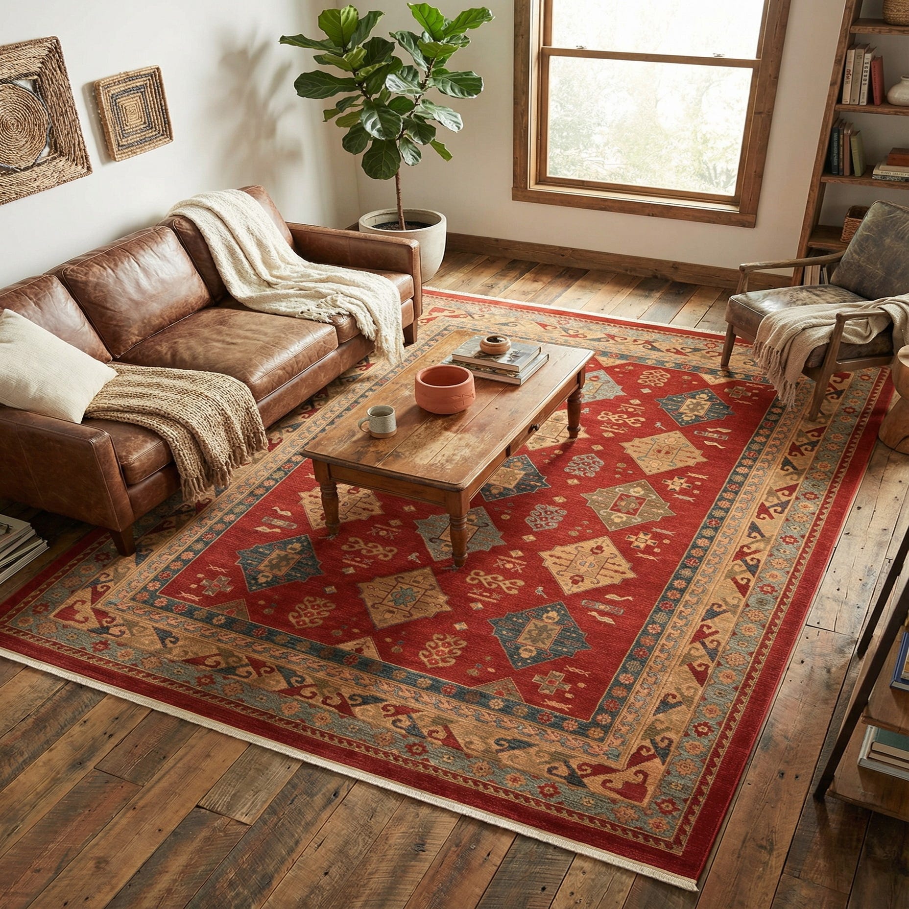 This rug pairs naturally with warm wood furniture and leather upholstery, making it well suited to a formal living room, library, or dining area where its classic pattern can anchor the space. It also works in a transitional setting when layered with simpler textiles and neutral walls to balance its ornate motif. Place it under a large seating group, centered beneath a dining table, or used to define a conversation area—its scale and color palette bring warmth and structure to rooms that favor traditional or mixed-traditional interiors.