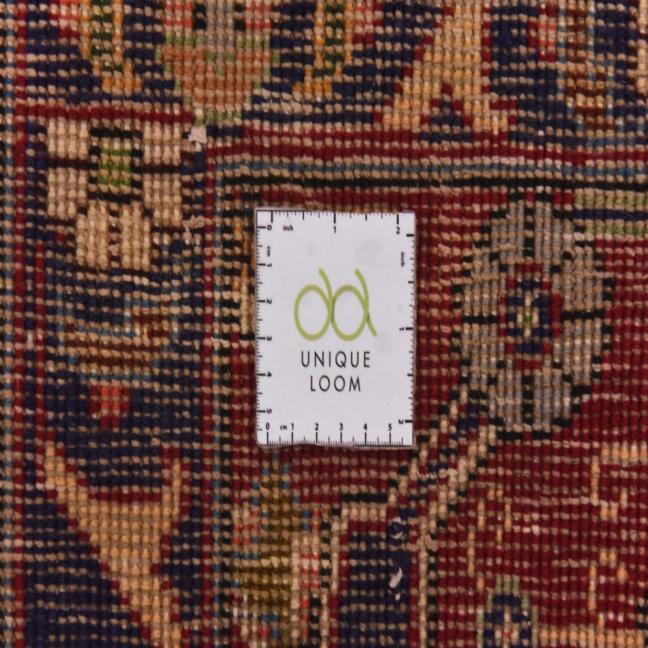 Primary color is Red. Colors in this rug include: Red, Black, Blue, Hunter Green, Ivory, Navy Blue, Olive, Pink.