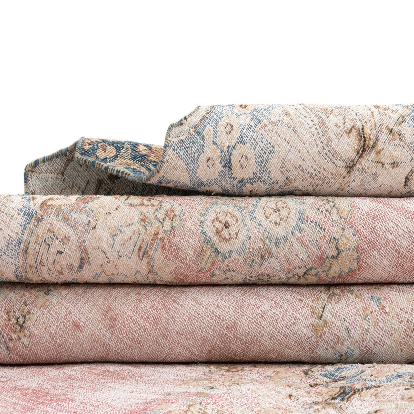 A 9x12 rectangular Vintage Royal Persian rug with a faded red field and light blue and cream traditional patterns.