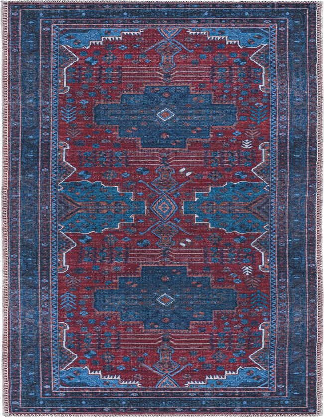 Primary color is Red and Blue. Colors in this rug include: Red and Blue, Ivory, Gray, Light Blue, Light Brown.
