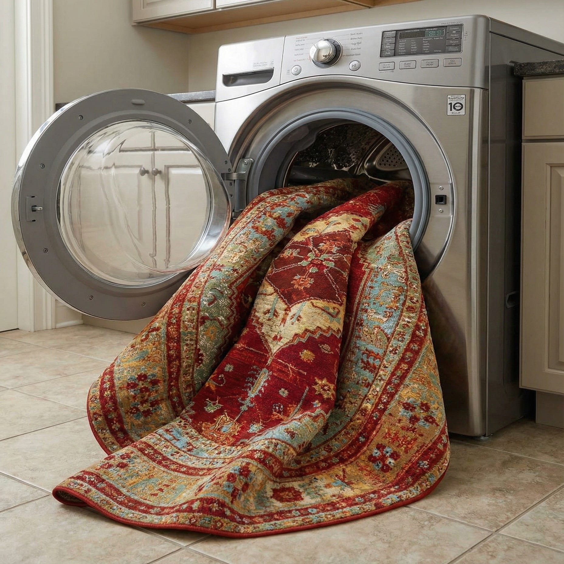 The round silhouette works especially well under a circular dining table or centered beneath a seating group on a covered patio, and the warm gold and ivory highlights pair nicely with dark wood or rattan furniture. Use it to ground a traditional living room, add color to a sunroom, or bring pattern to an eclectic or global-inspired entry. The palette and durable construction make it a flexible choice for both indoor and sheltered outdoor settings.