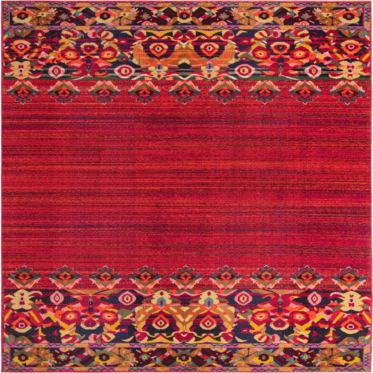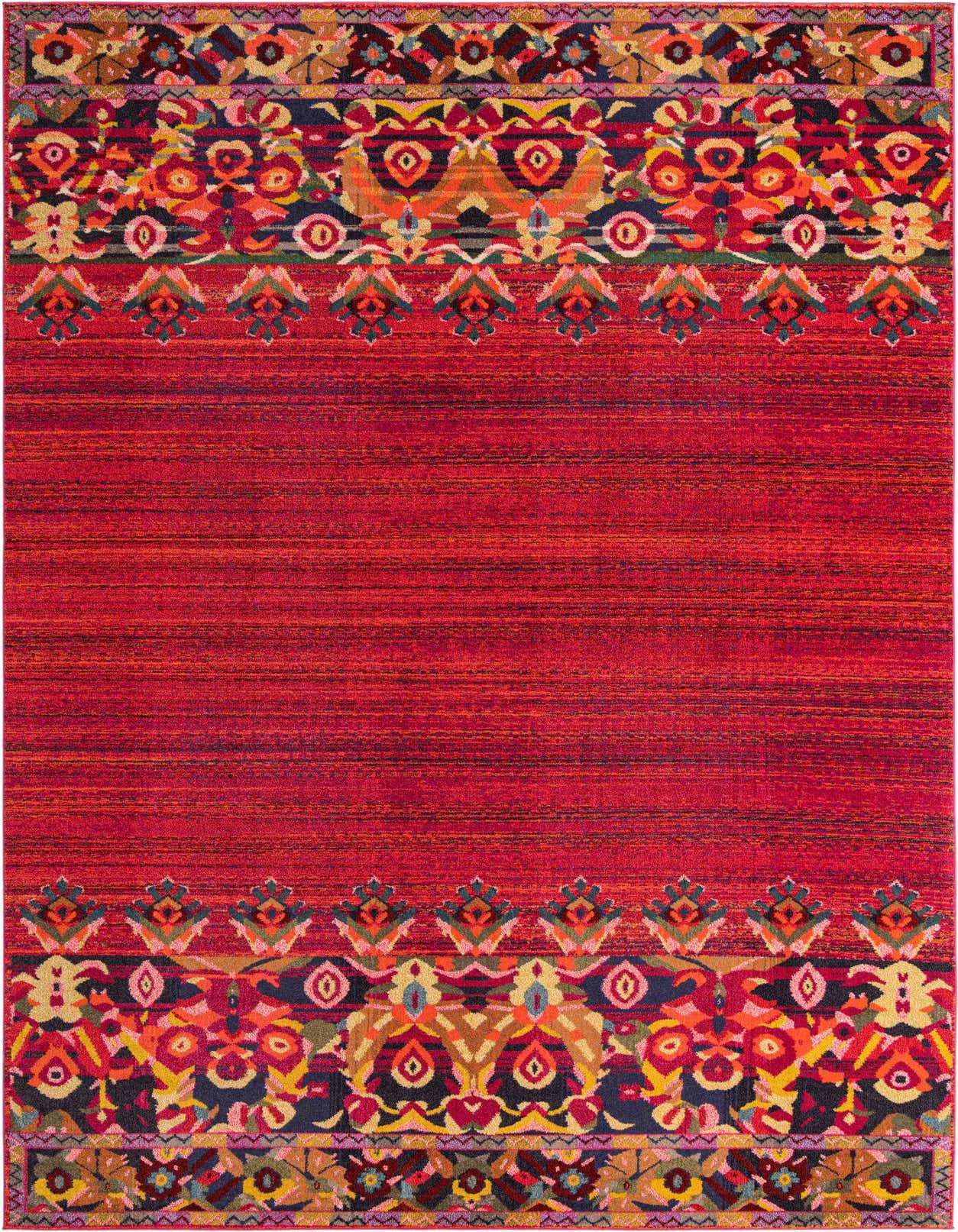 Primary color is Red. Colors in this rug include: Red, Puce, Purple, Pink, Plum Red, Blue, Navy Blue, Ivory, Yellow, Gold, Green, Burgundy, Peach.