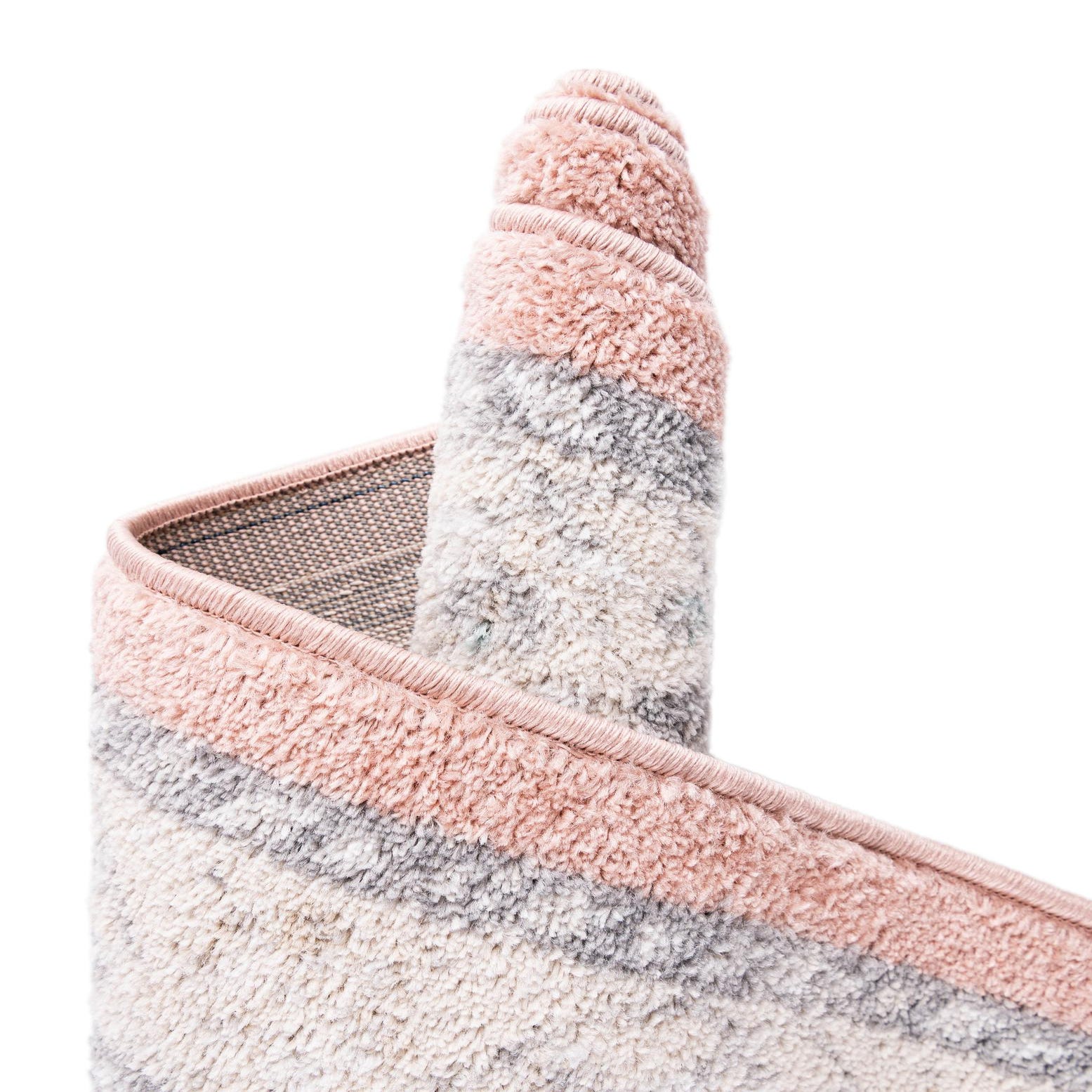 Primary color is Rose. Colors in this rug include: Rose, Beige, Gray, Light Green.