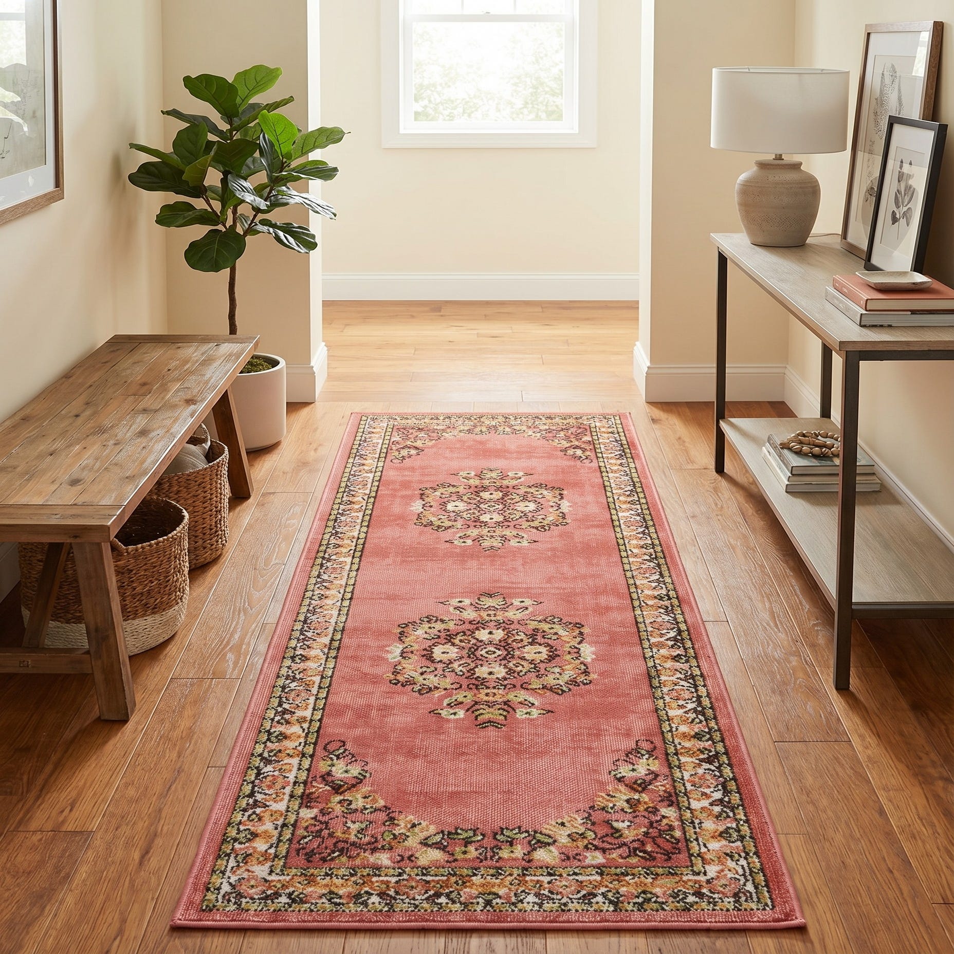 This rug has become the design inspiration for my whole house! I was tired of all the grey and tan and this was the perfect solution. The rug lays nice and flat in a high traffic area no tripping on bent up corners. It was folded when it came but the creases have all flattened out nicely with no extra effort on my part. I get a lot of compliments on it.