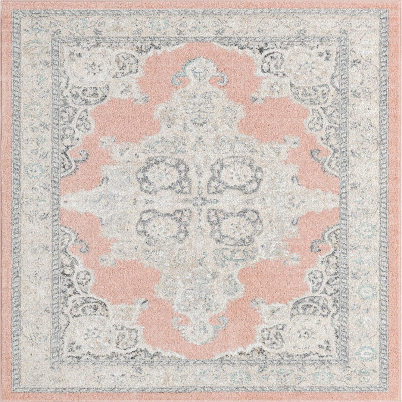 Primary color is Rose. Colors in this rug include: Rose, Beige, Gray, Ivory, Light Green.