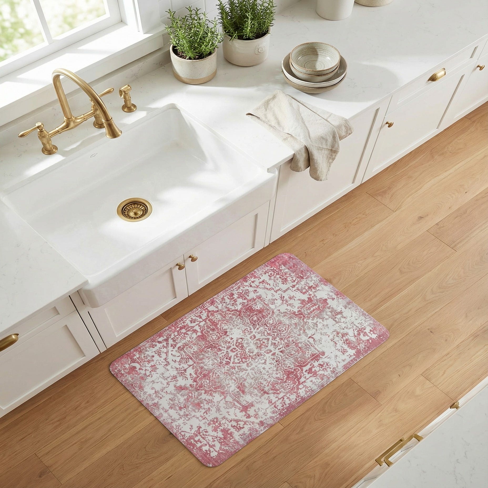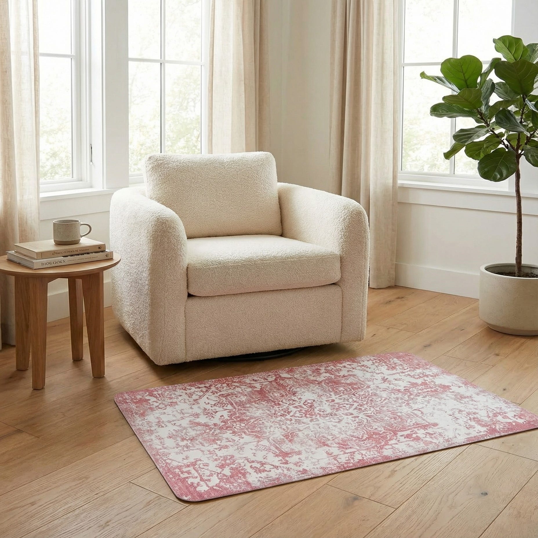 Primary color is Rose Pink. Colors in this rug include: Rose Pink, Ivory.