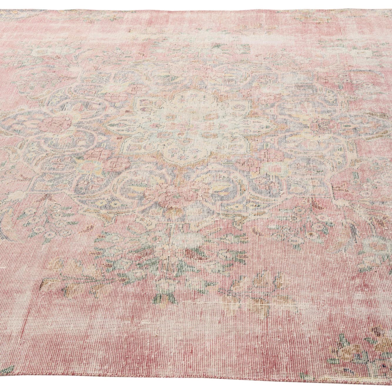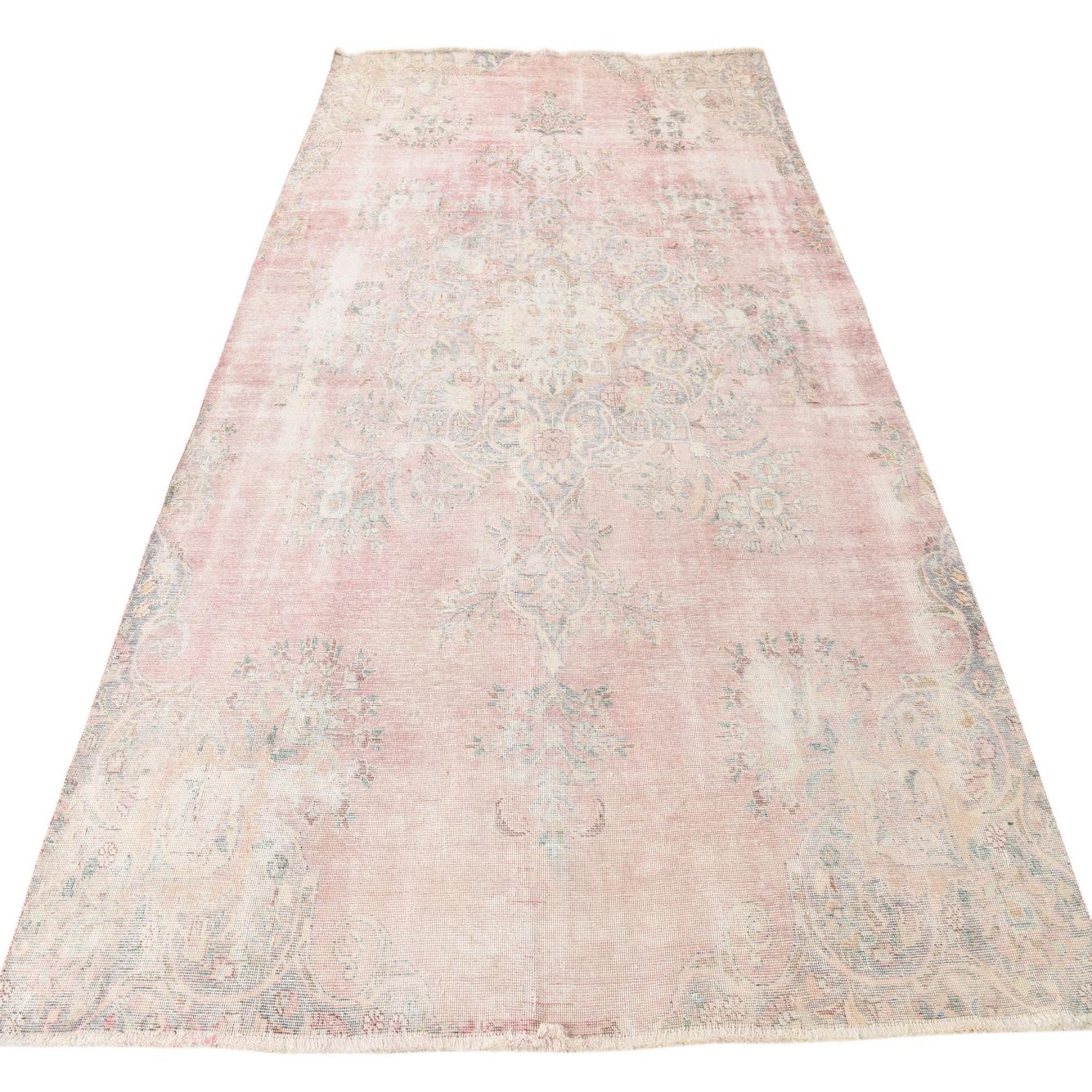 A 7x10 rectangular Ultra Vintage rug featuring a faded pink and red Persian pattern with an ornate central medallion.