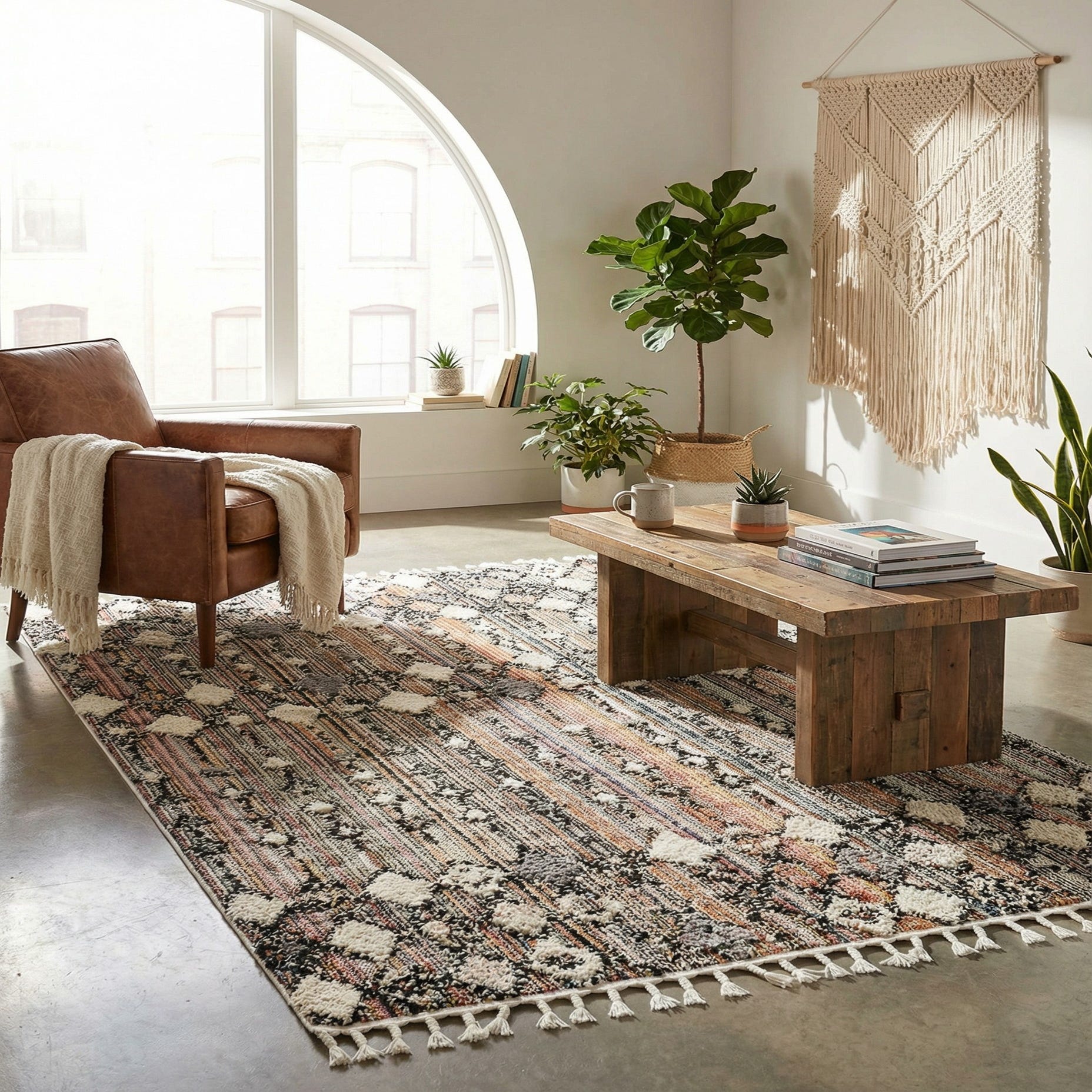 Machine made of 100% polypropylene, the rug has a soft, tactile pile with a relaxed high-low texture that invites bare feet. It works well beneath a coffee table in a warm-toned living room, layered over hardwood or a natural-fiber base in a casual dining area, or used to add color and pattern at the foot of a bed in a contemporary bedroom. Pair it with leather or linen upholstery, woven baskets and wood accents for a cohesive, lived-in feel.