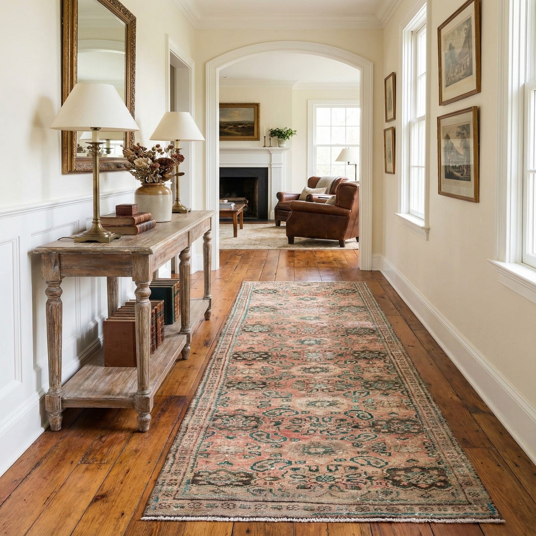The well-defined fringes at both ends of the runner add a classic touch that enhances the timeless appeal of the piece. Due to the rug's versatile color palette and design, it is suitable for a range of interior design scenarios. It can serve as a grounding element in a traditional setting, add warmth to a minimalist space, or contribute to the layered textures and patterns in a bohemian or eclectic aesthetic. This runner is particularly well-suited for long hallways, entryways, or narrow spaces where it can bring elegance and character to transitional areas within a home.