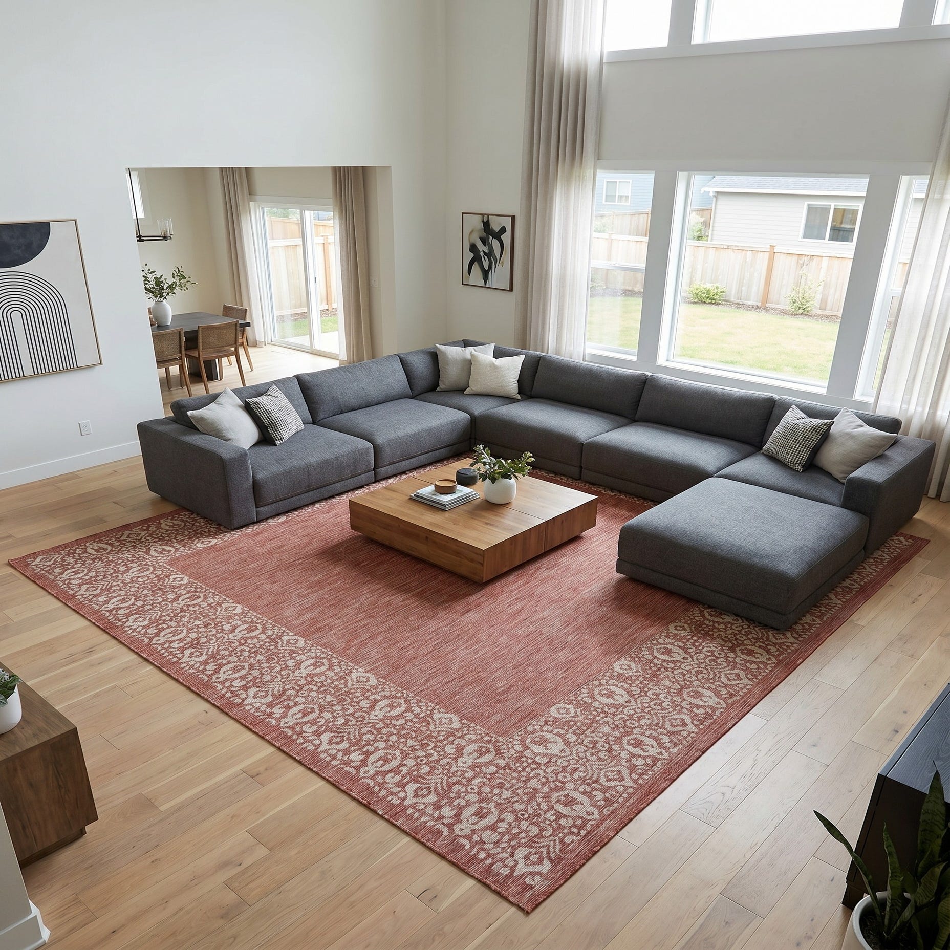 10' 8 x 10' 8 Easy-Clean Border Indoor / Outdoor Square Rug